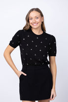 Sparkle and shine in this delightfully cozy crew neck sweater! Crafted from soft knit fabric, this short-sleeved beauty features eye-catching rhinestones scattered across the front for that perfect touch of glam. Ribbed trim at the neckline, hemline, and sleeves keeps everything polished and put-together. Whether you're dressing up a casual outfit or adding pizzazz to your everyday look, this sweater brings the fun without trying too hard.