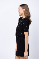 Milly Rosayn Rhinestone Crew Neck Sweater in Black