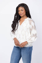Elevate your everyday wardrobe with the Ramy Brook Ria Top, a stunning v-neck design crafted in luxurious winter white diamond lurex lace. This versatile piece seamlessly transitions from casual to elegant—pair it with your favorite jeans for an effortless dinner look or style it with tailored pants for sophisticated holiday celebrations. The delicate, shimmering lace texture adds just the right amount of glamour without sacrificing comfort, making sparkle the perfect accessory for any occasion. Discover how a single top can transform your entire rotation.