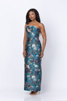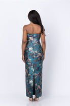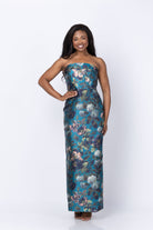 Theia Liora Strapless Column Gown in Gilded Hydrangea