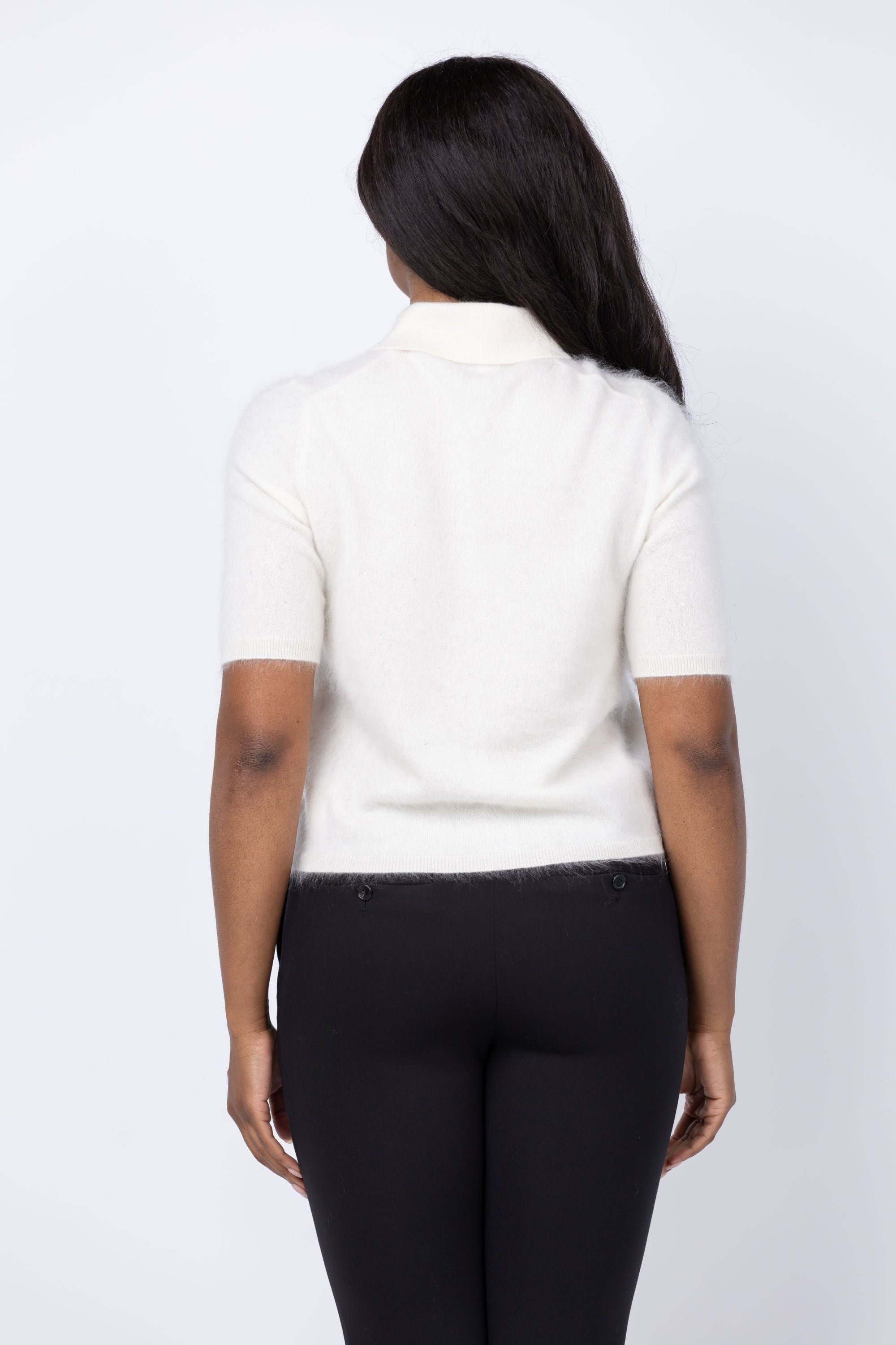 Theory Brushed Short Sleeve Cardigan in Ivory