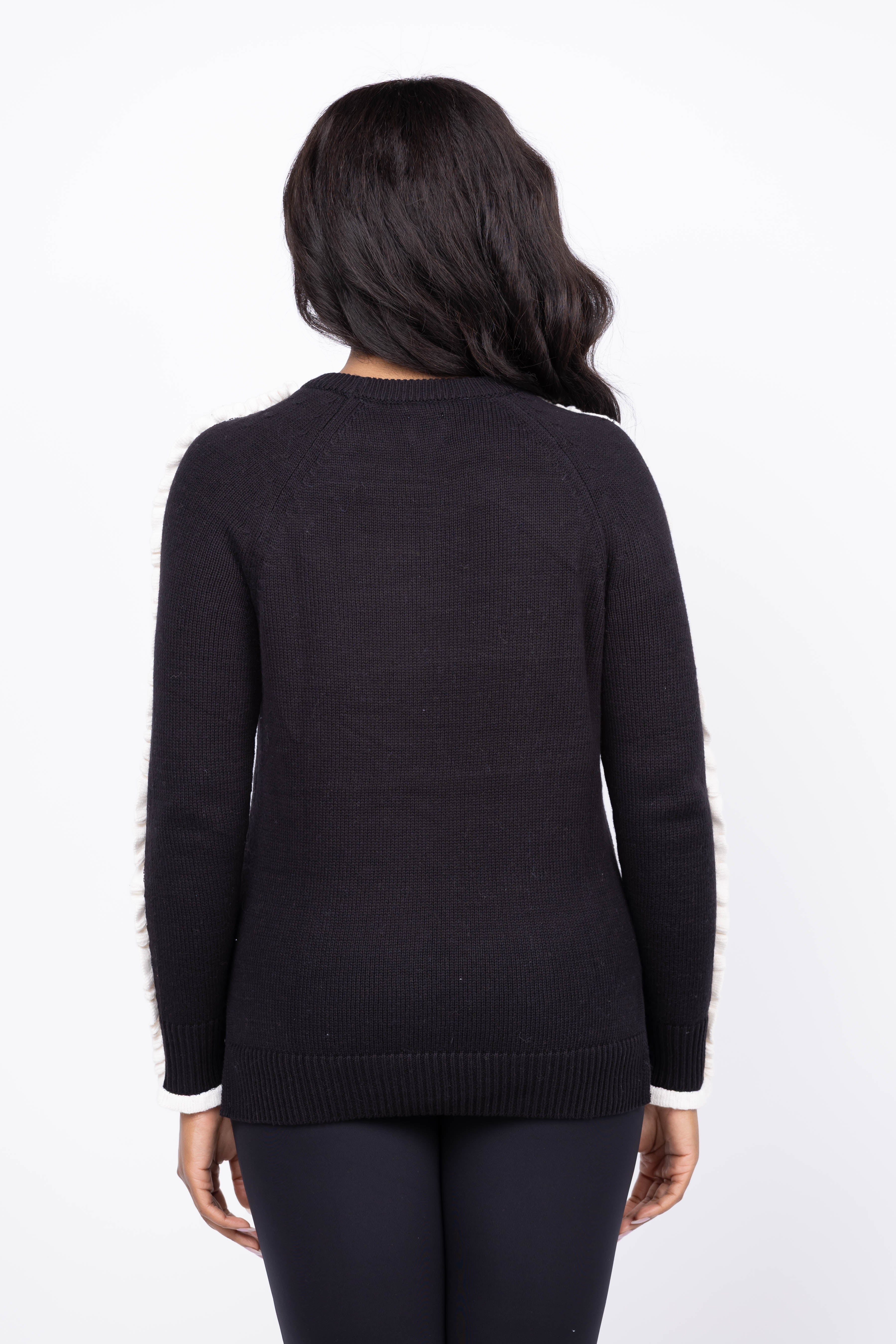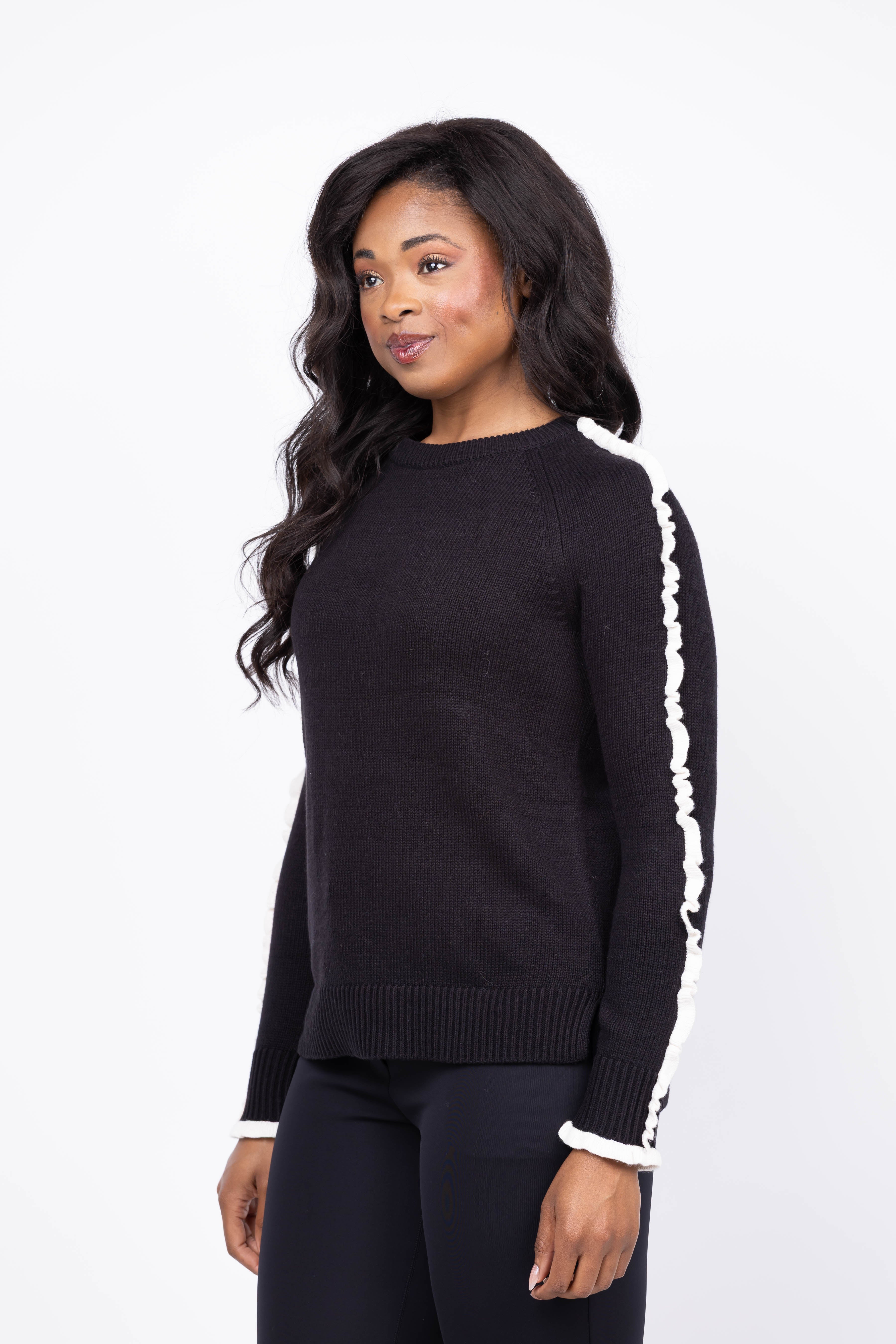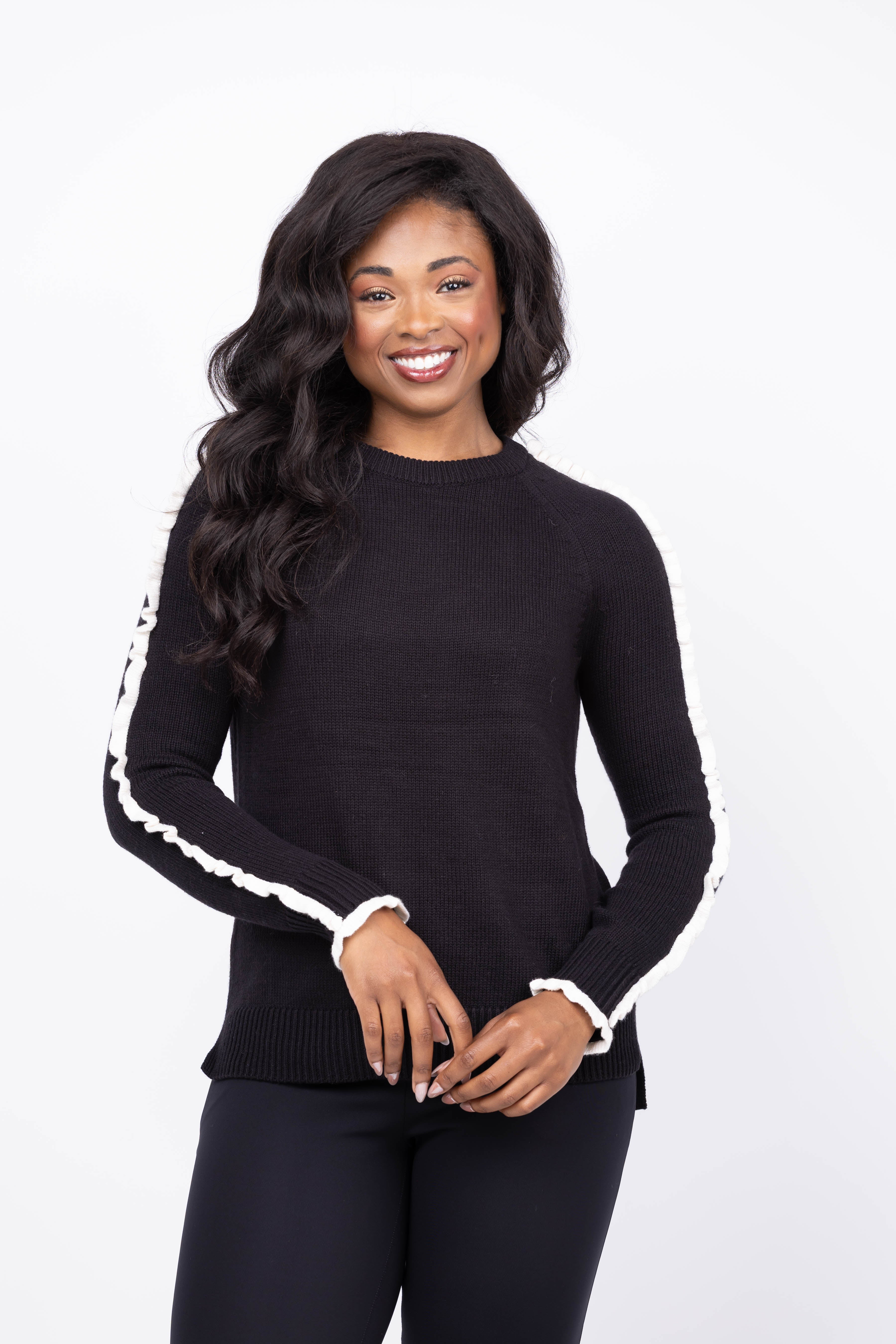 NIC + ZOE Ruffled Down Sweater in Black Onyx