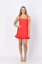 The Amanda Uprichard Annabeth Dress in Candy Apple delivers bold energy with a flirty edge. Its supportive wide straps and square neckline offer a flattering fit, while the drop-waist flouncy hem adds playful movement. This versatile mini dress transitions seamlessly from day to night—style it with cowboy boots for a lively evening or ballet flats for all-day comfort. Embrace vibrant style and effortless charm with this standout piece.
