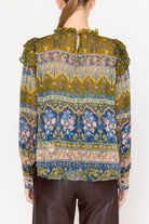The Christy Lynn Alicia Top in Mirage exudes effortless elegance with its high ruffled neckline and flowing silhouette. Long sleeves finished with cuffs and a delicate button closure at the back ensure a polished fit. Stylish fringed ruffle detailing at the shoulder adds a subtle yet eye-catching accent. This beautifully crafted top is a timeless addition that elevates any wardrobe with refined sophistication.