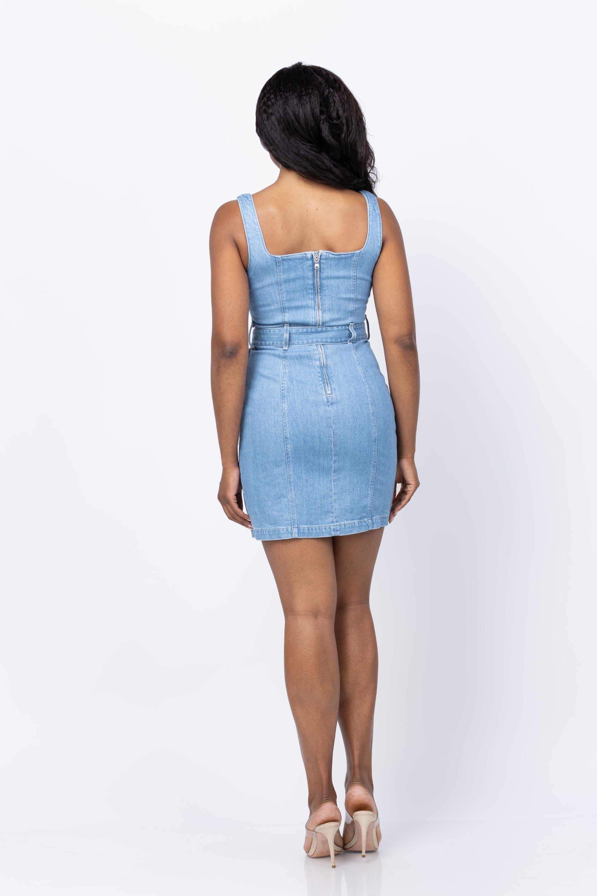 Introducing the L'Agence Midy Button Front Tank Dress in Olvera! Embrace your curves with its structured fit, sculpting your figure. In a light wash denim, this mini button-front dress is perfect for both casual and dressy occasions. Try it and feel the confidence it brings!