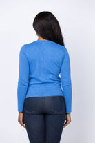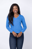 Lilla P Long Sleeve Self Trim V-Neck in Lapis
