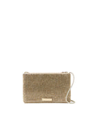 Elevate your evening look with this stunning gold diamanté clutch from Loeffler Randall. The compact design fits effortlessly into your hand while making a bold statement with its shimmering rhinestone embellishments. Inside, a fully lined interior keeps your essentials organized and protected, while the secure zipper closure ensures nothing goes missing. The signature metal logo plaque adds an unmistakable touch of luxury. Perfect for cocktail parties, galas, or any occasion where you want to shine.