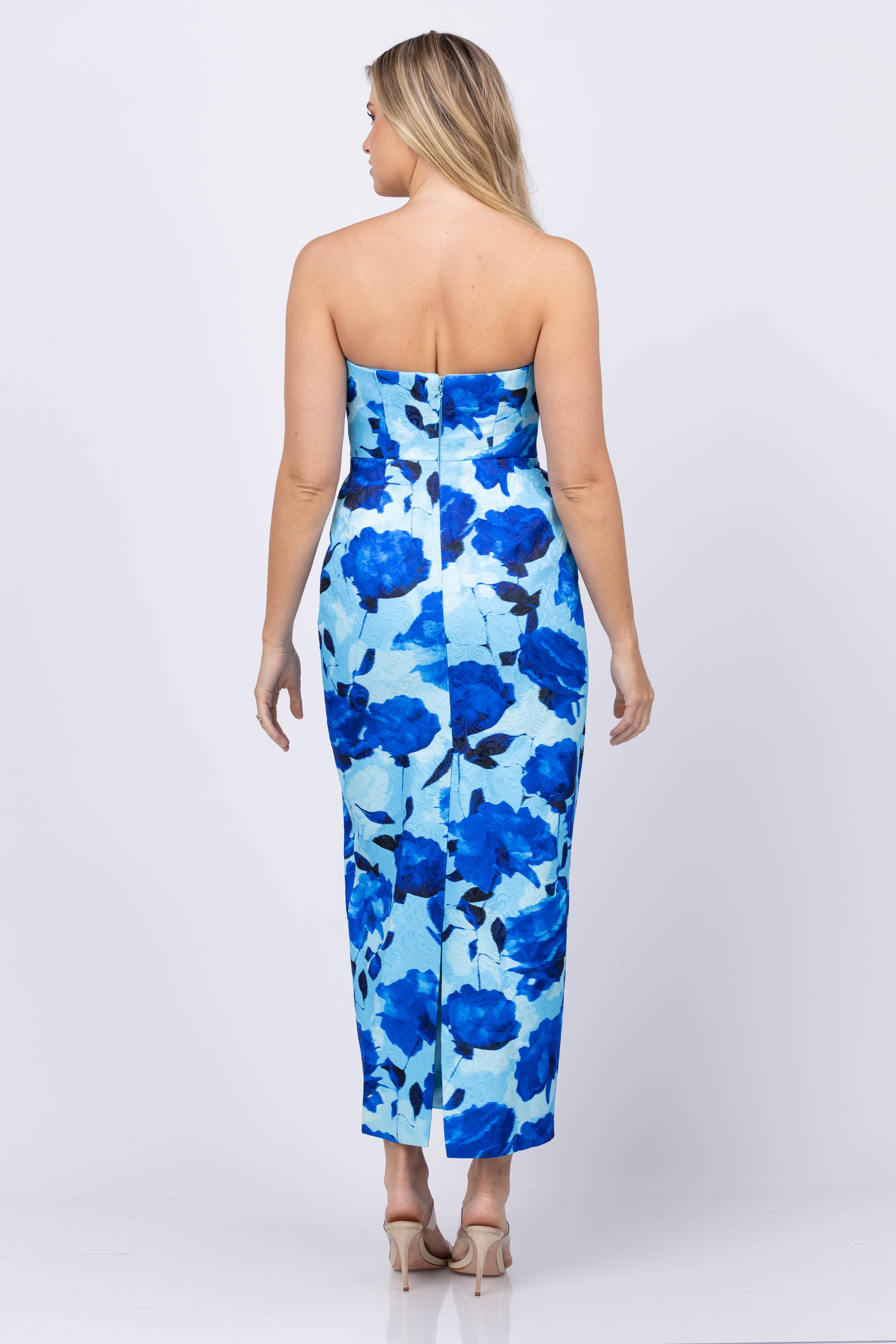 The Milly Orion Blurred Blossom Dress in Blue Multi is a show-stopping maxi perfect for unforgettable occasions. Its strapless design with boning and a back zip ensures a secure, flattering fit, while the textured floral jacquard fabric adds sophisticated charm. Featuring a graceful back slit and non-slip silicone gripping at the chest, this dress lets you move confidently from formal events to nights out with ease and elegance.