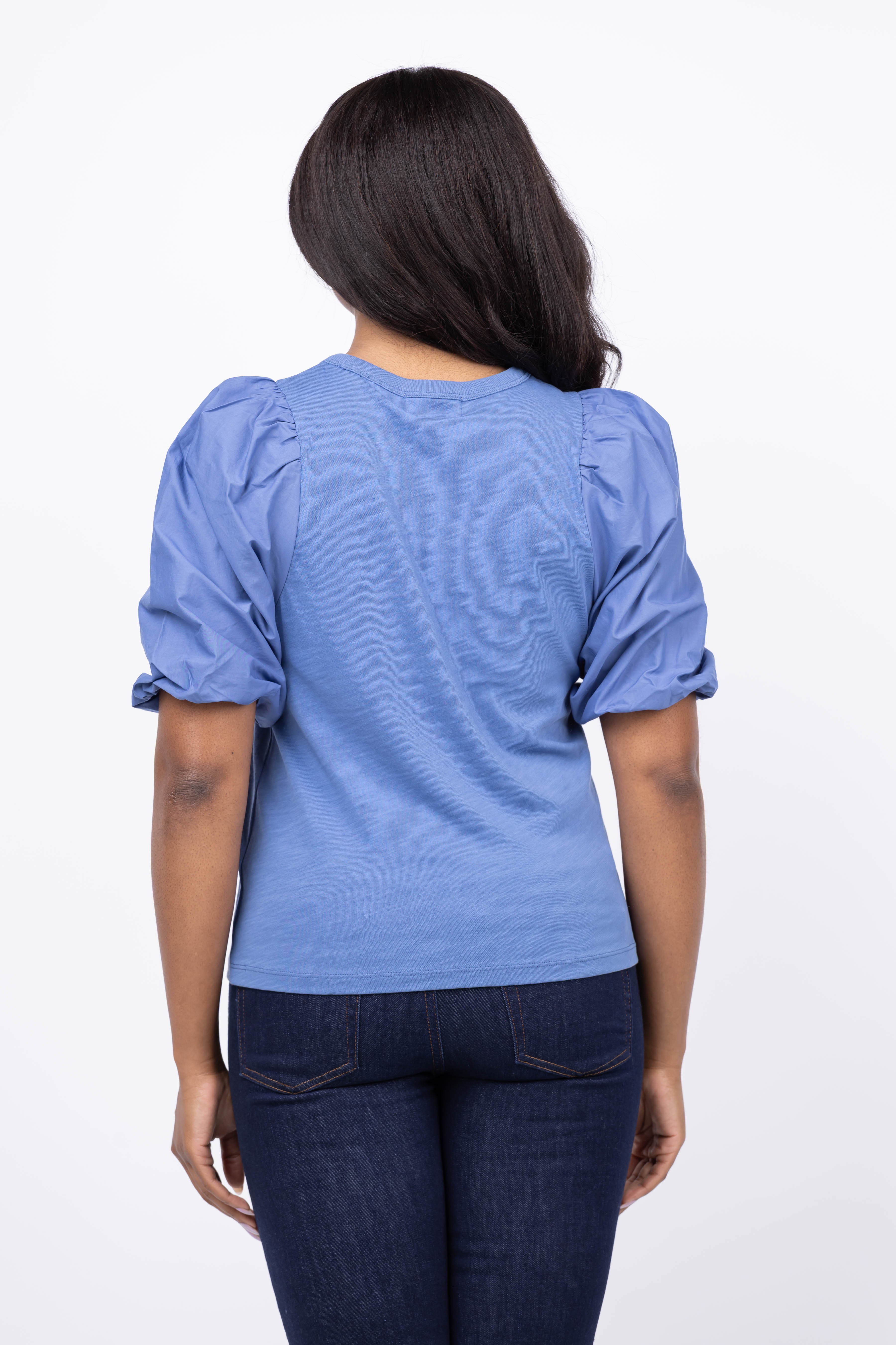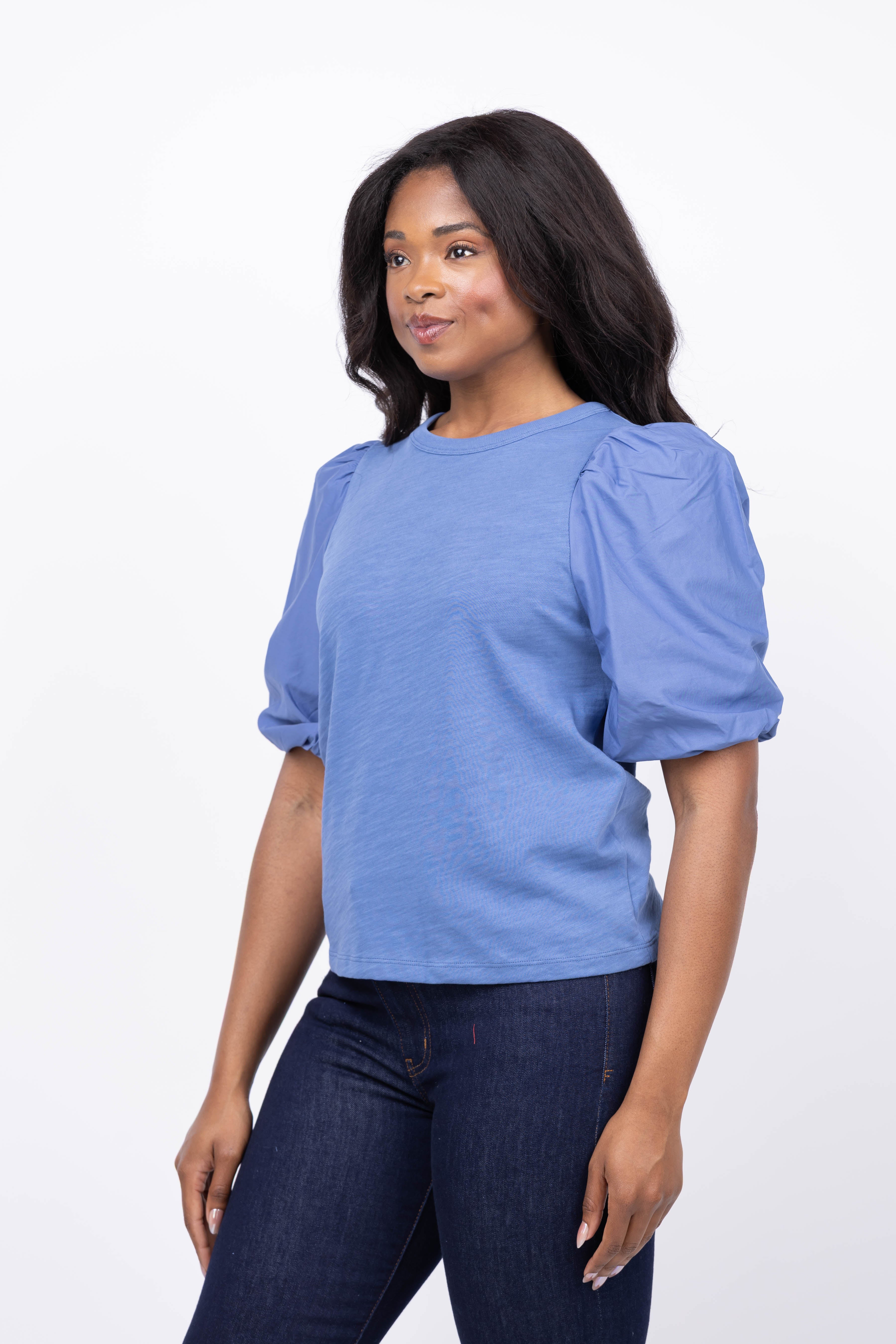 Elevate your wardrobe with the NATION LTD Tippi Top in Harbor Blue. This stylish crewneck features trendy puff sleeves that add a touch of elegance and modern flair. Crafted for comfort and chic appeal, it’s perfect for effortlessly enhancing any outfit, whether for casual outings or dressier occasions.