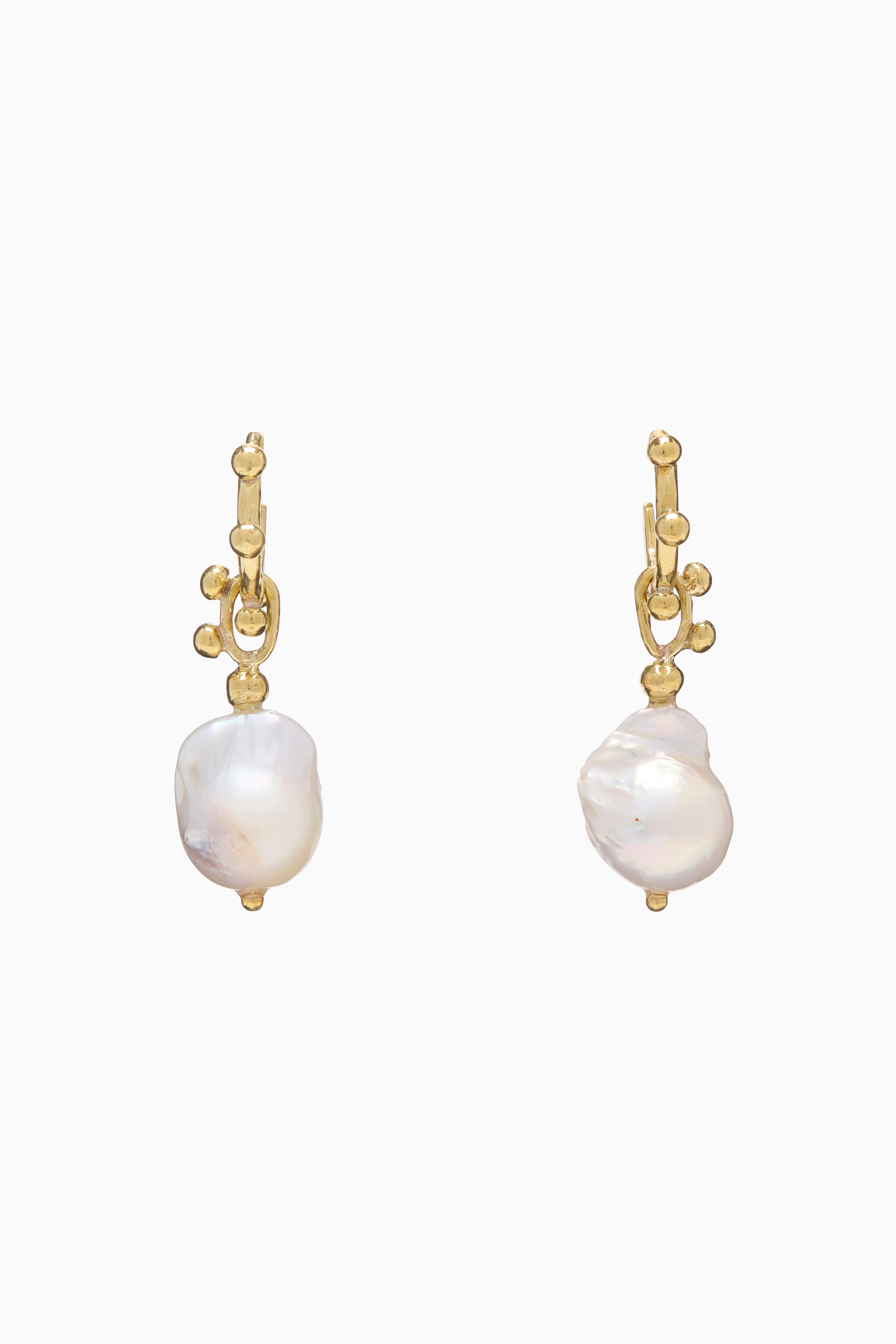 The Ulla Johnson Lilith White Pearl Hoop Earring offers a perfect balance of distinctive style and everyday simplicity. Handmade by artisans in Nairobi, its brass hoop features delicate granulations inspired by ancient jewelry, beautifully accented with lustrous baroque freshwater pearls. This elegant earring adds a timeless, sophisticated touch to any outfit, making it an essential piece for your daily collection.