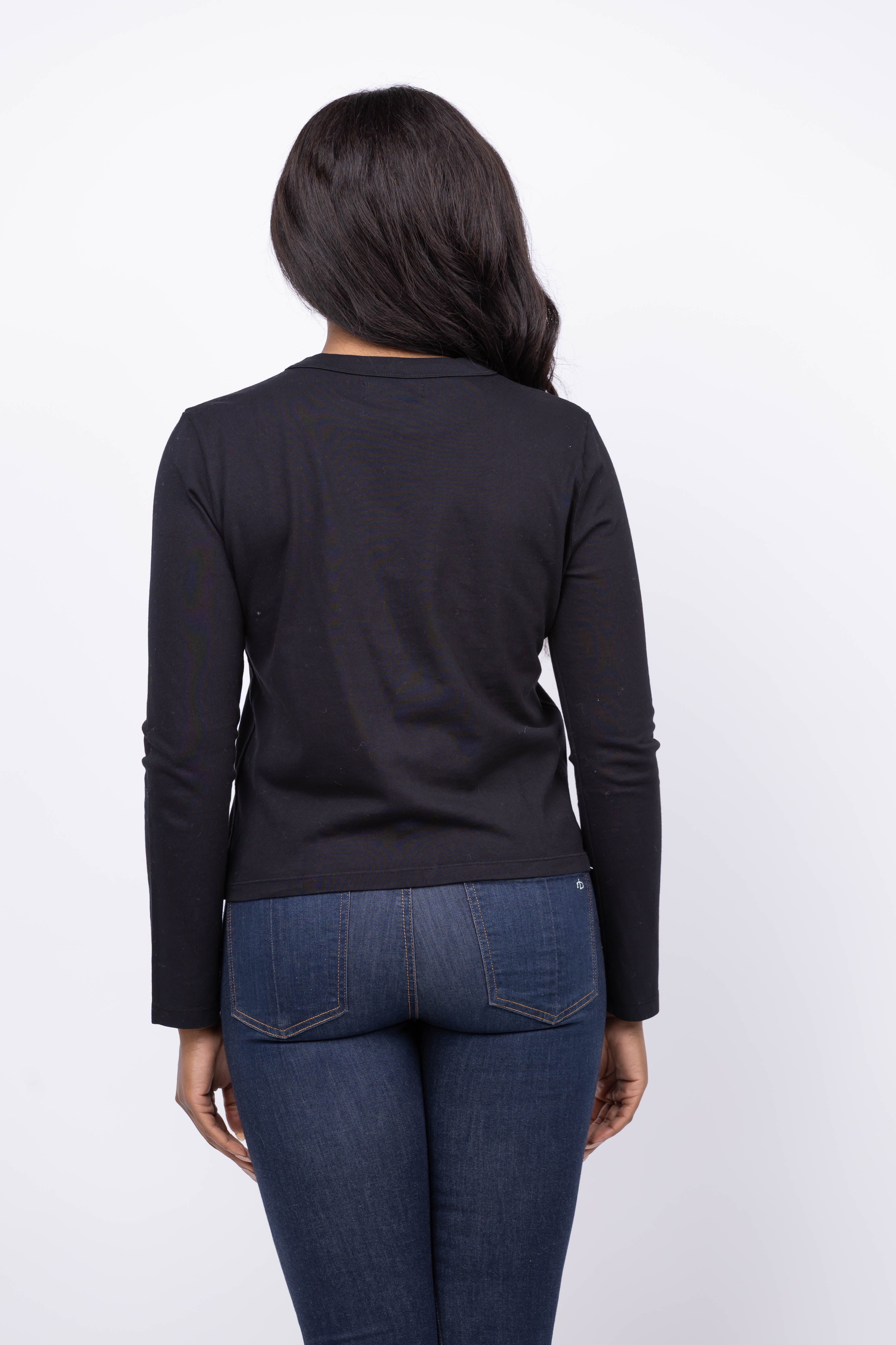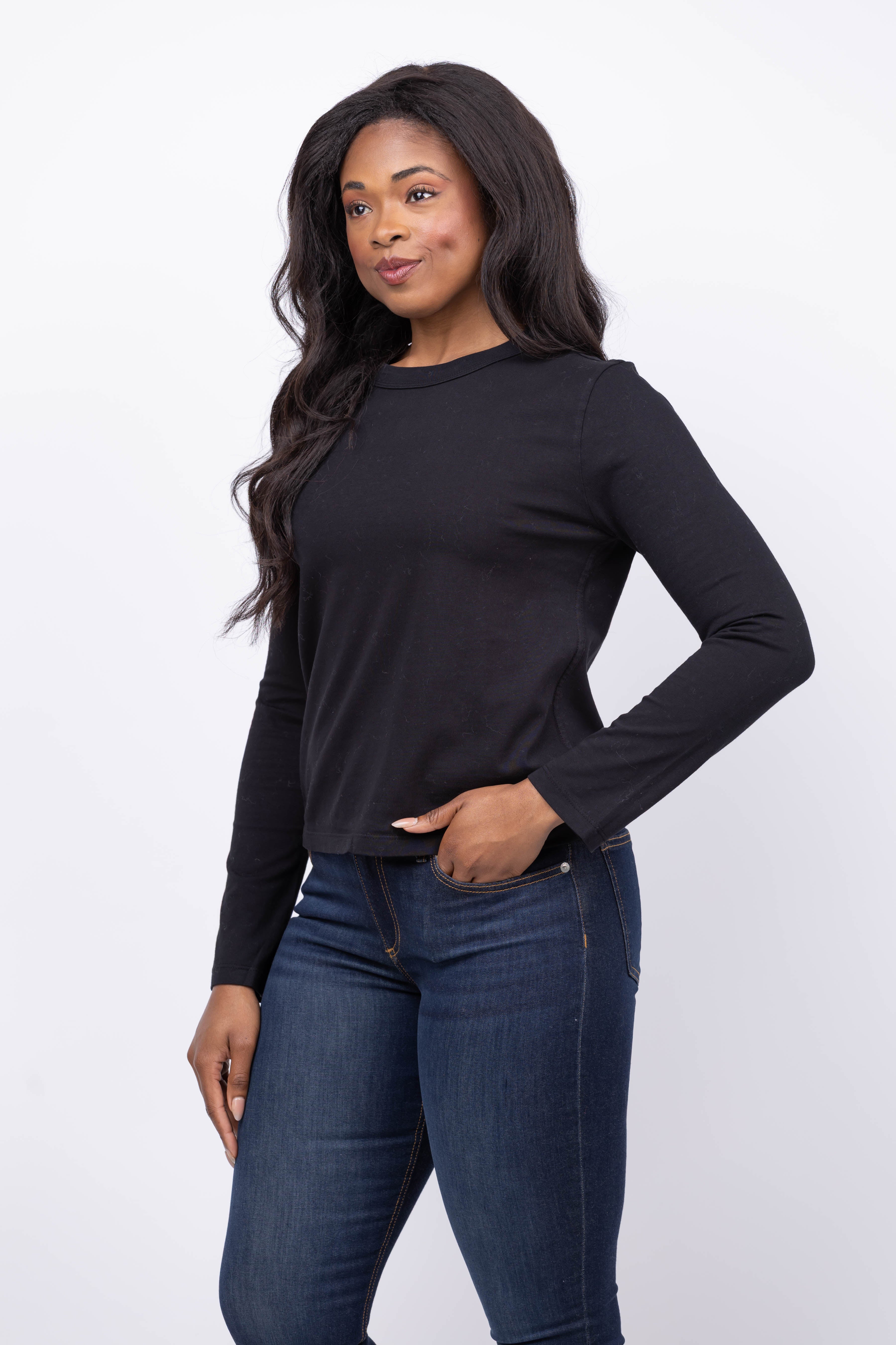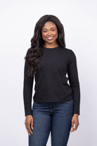 Indulge in luxurious comfort with the Velvet by Graham & Spencer Susanna Top in Black. This tee features a timeless crew neckline and long sleeves for a chic, yet relaxed style. Made from mid-weight cotton jersey, it offers a vintage-inspired look that only gets better with each wear. Elevate your wardrobe with this enduring staple.