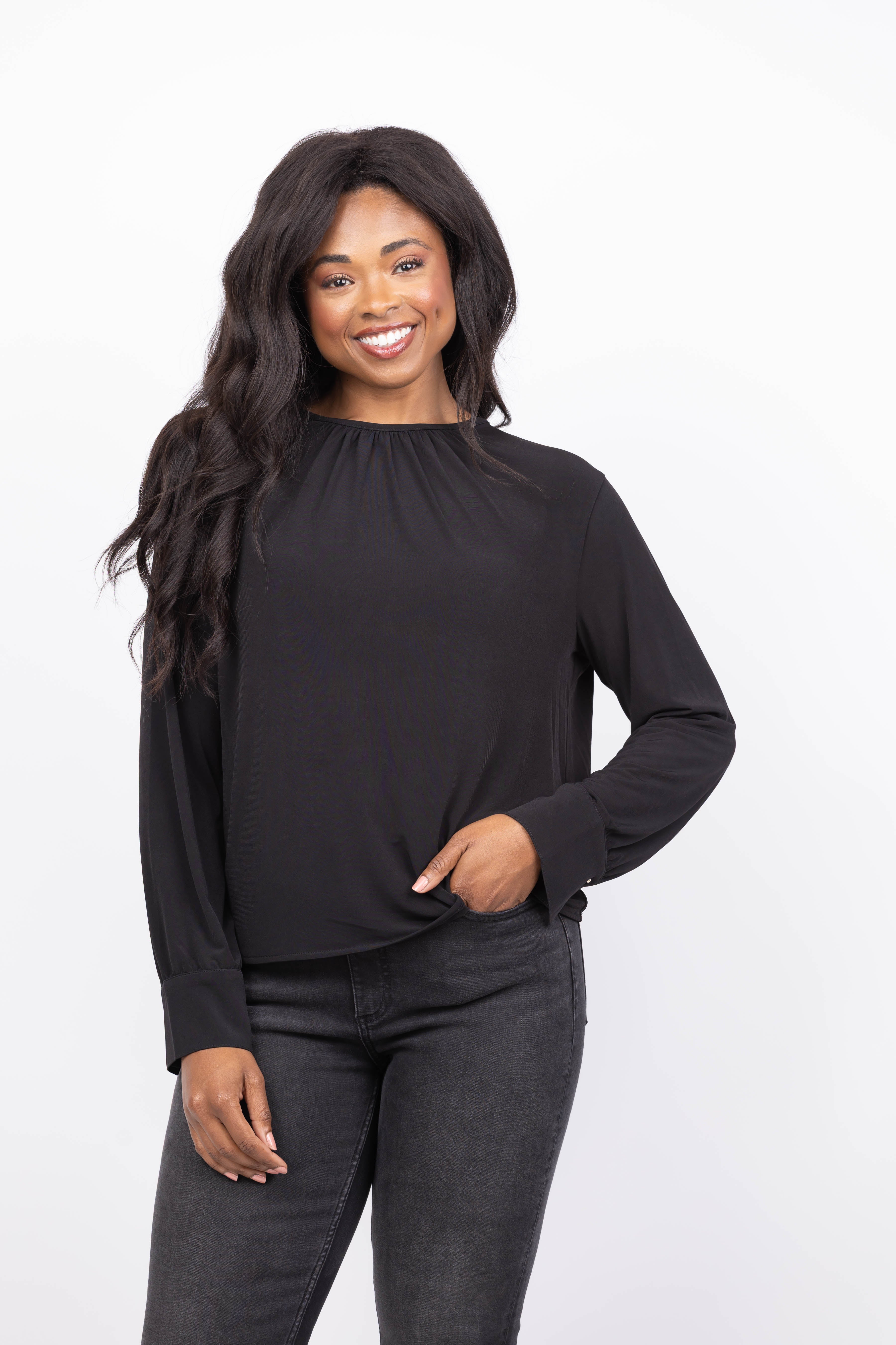 Vince Soft Gathered Blouse in Black