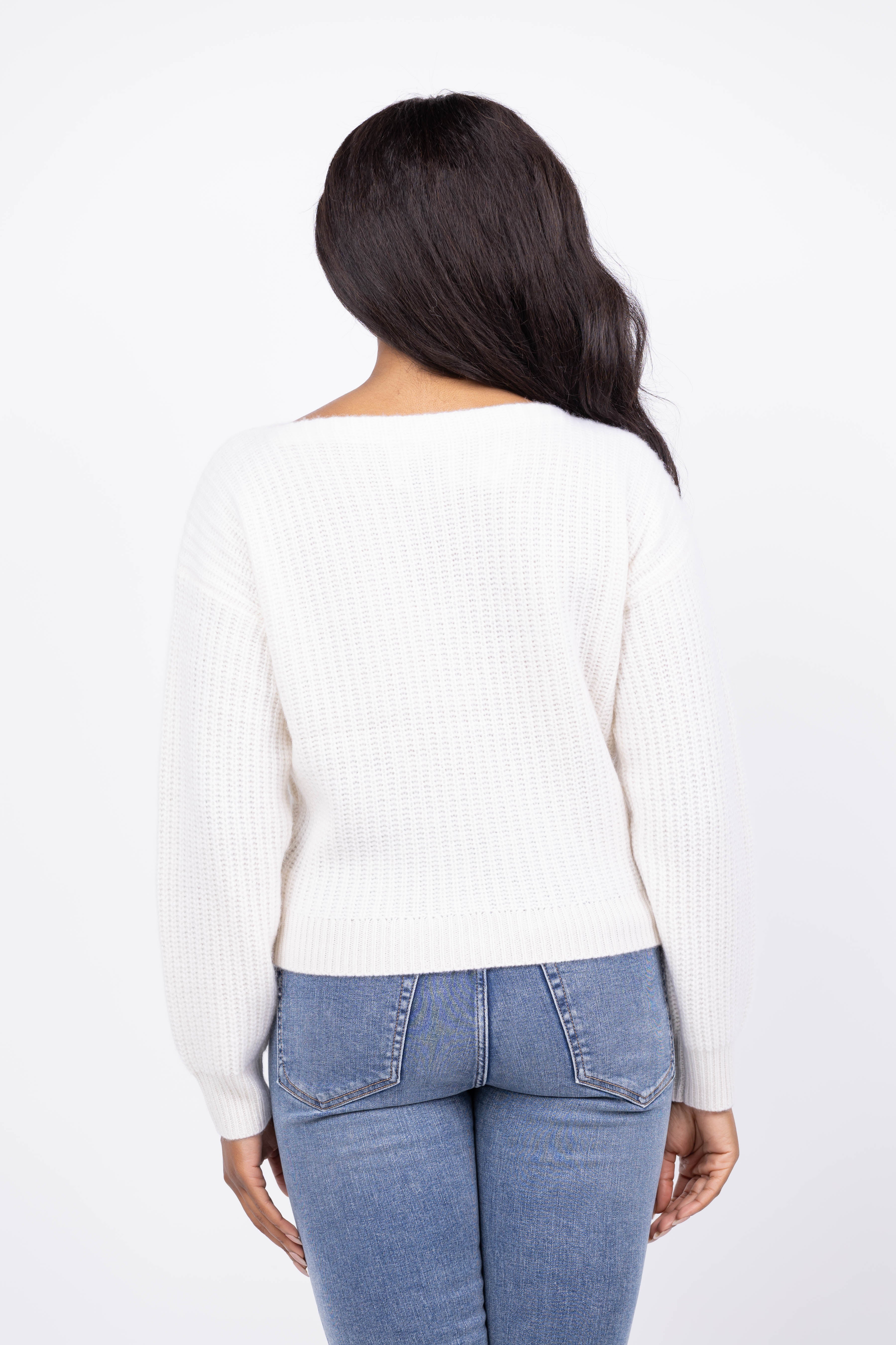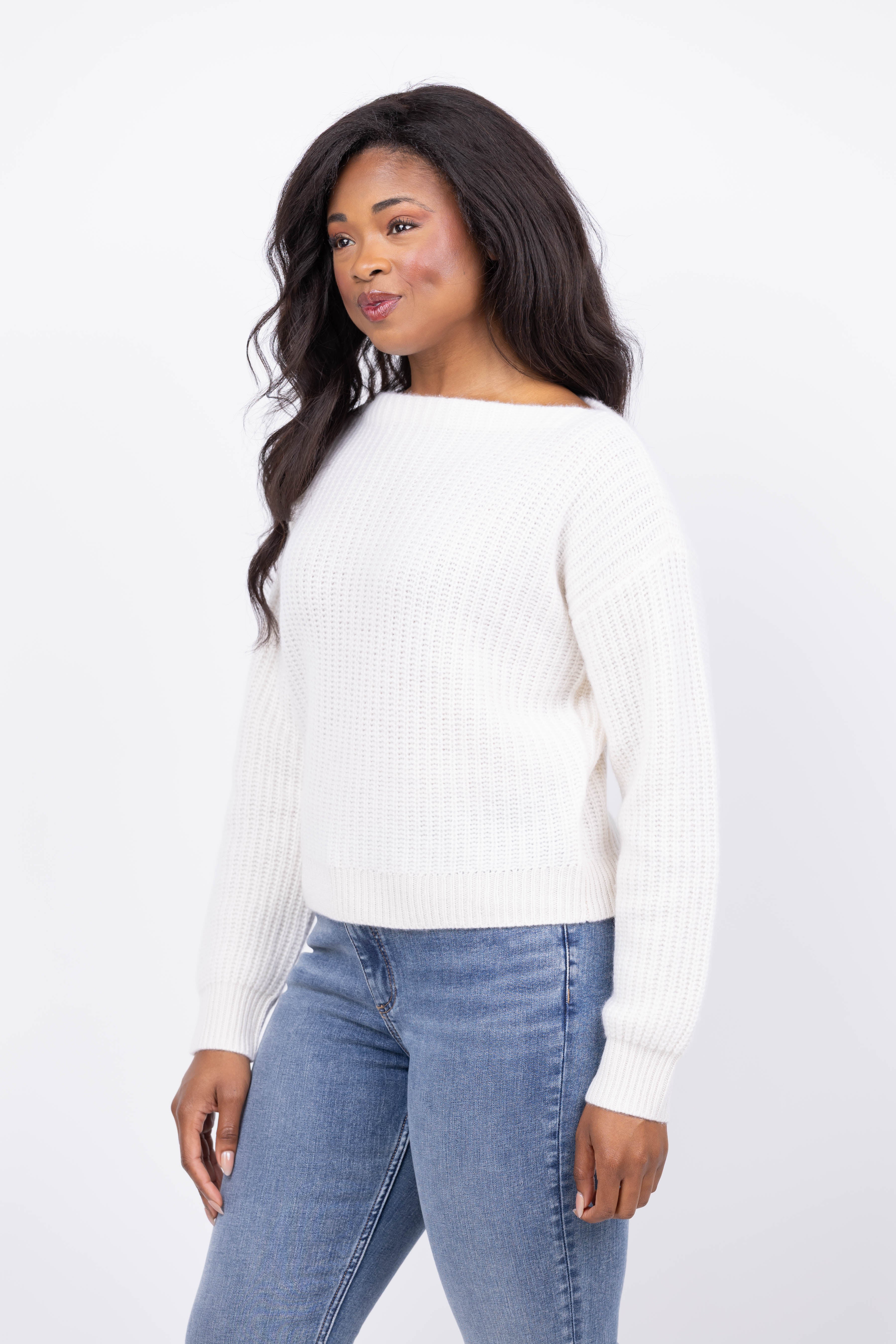 White & Warren Cashmere Ribbed Boatneck in Soft White