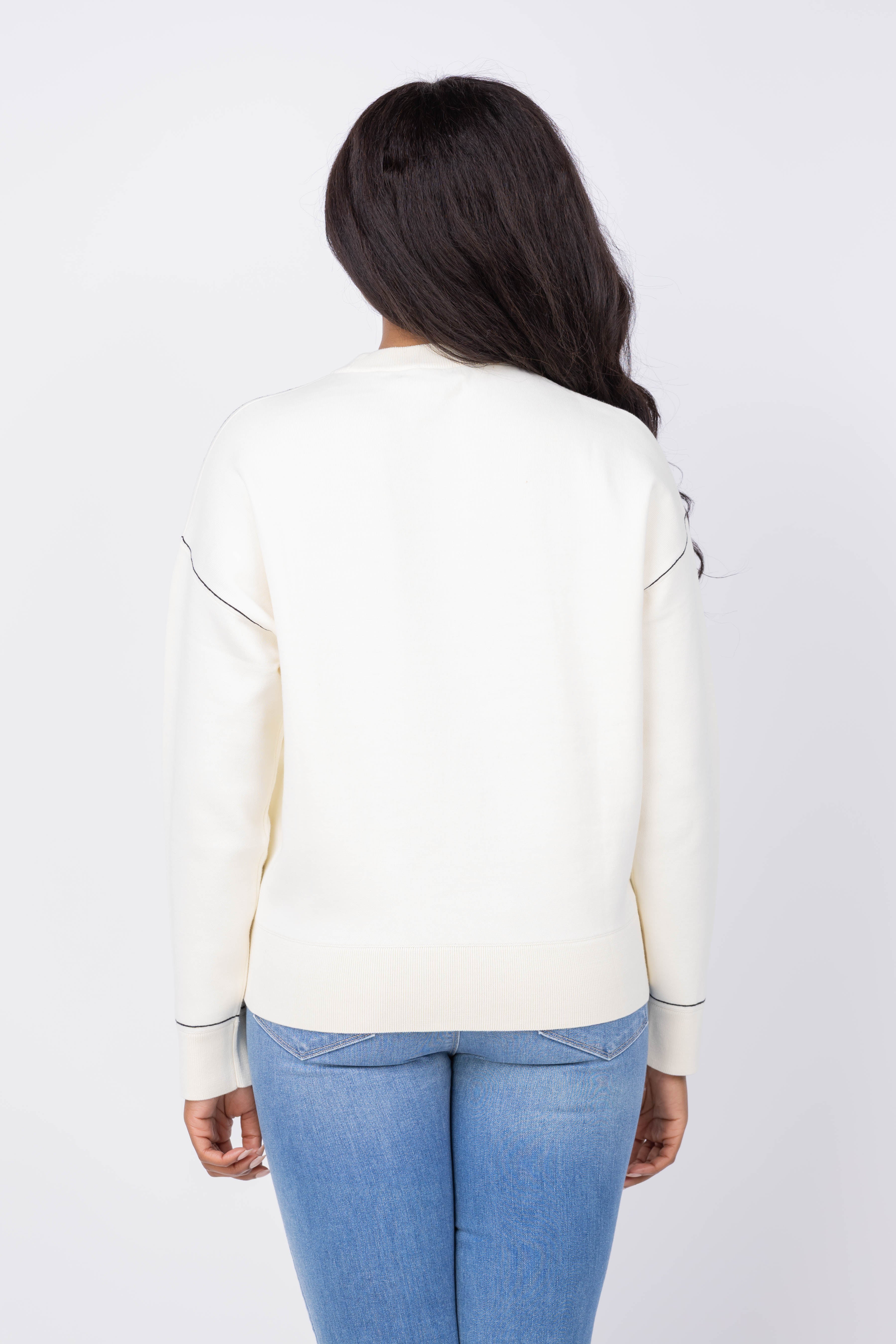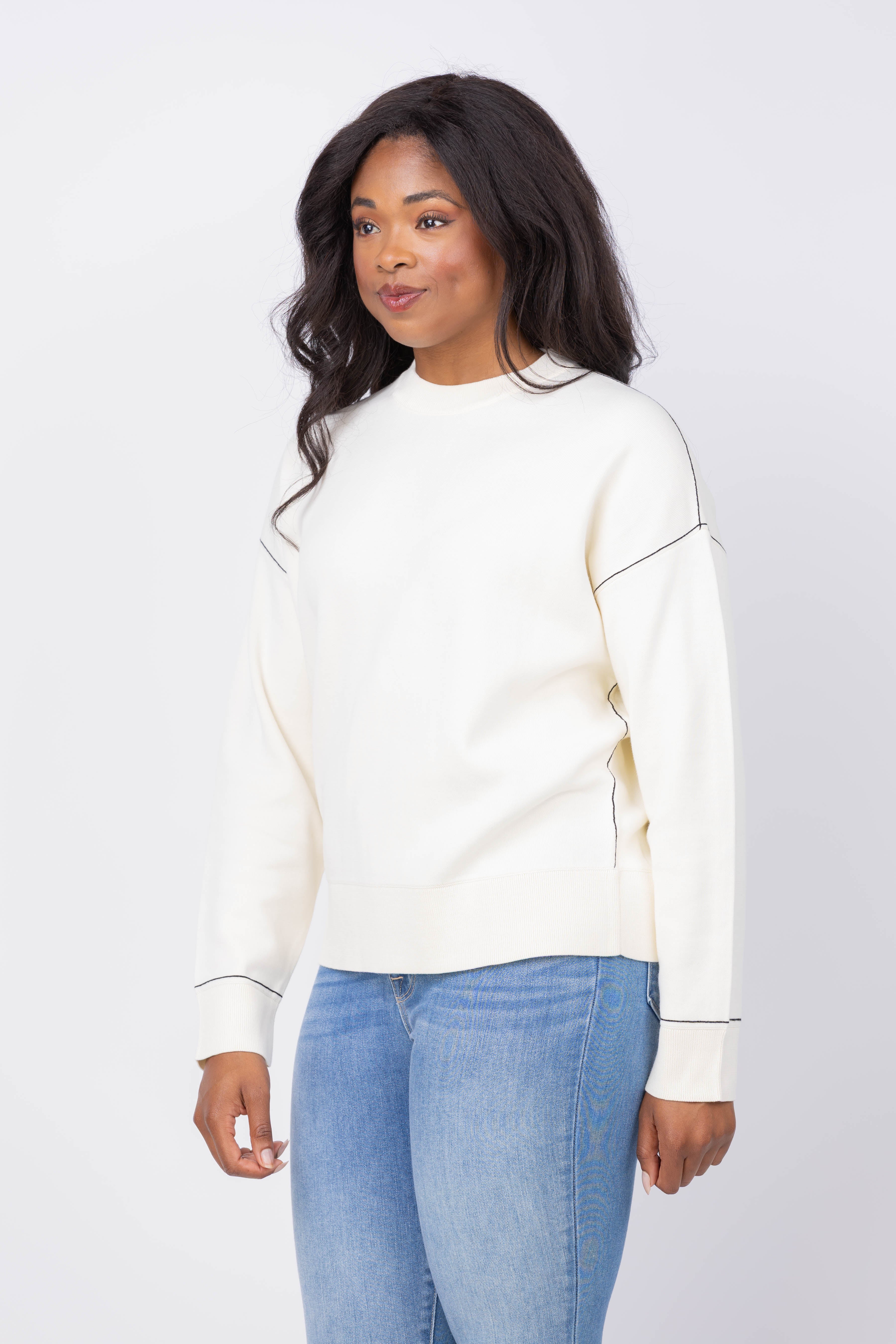 White + Warren Superfine Organic Cotton Easy Sweatshirt in White/Black