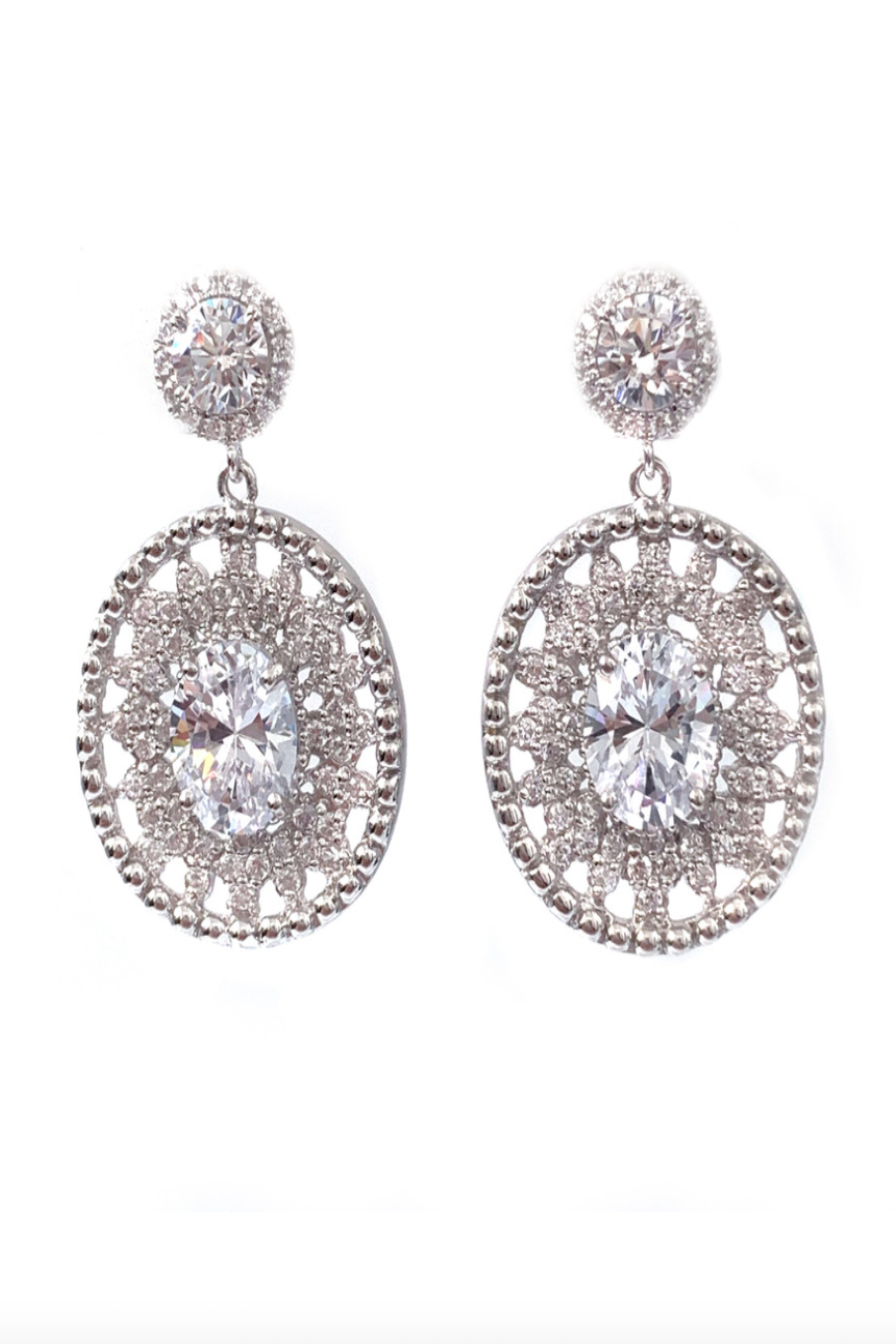 Bijoux Num Oval CZ Sunburst Drop Earrings