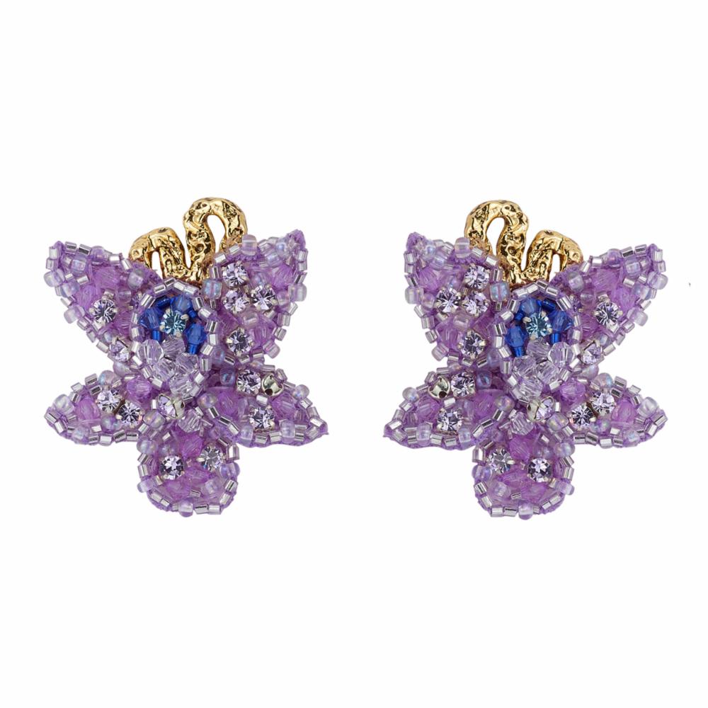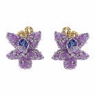 Transform your look with the exquisite Mignonne Gavigan Manny Earrings in Purple, meticulously designed to capture the delicate beauty of blooming orchids. Each earring features intricate petal details hand-beaded in lavender and silver, creating a dimensional, sophisticated statement that catches light from every angle. Crafted with 14k gold plated brass and secured with comfortable stainless steel posts, these stunning pieces incorporate sparkling glass crystals for added brilliance. Elevate any outfit with these botanical-inspired treasures that blend artistry with wearable luxury.