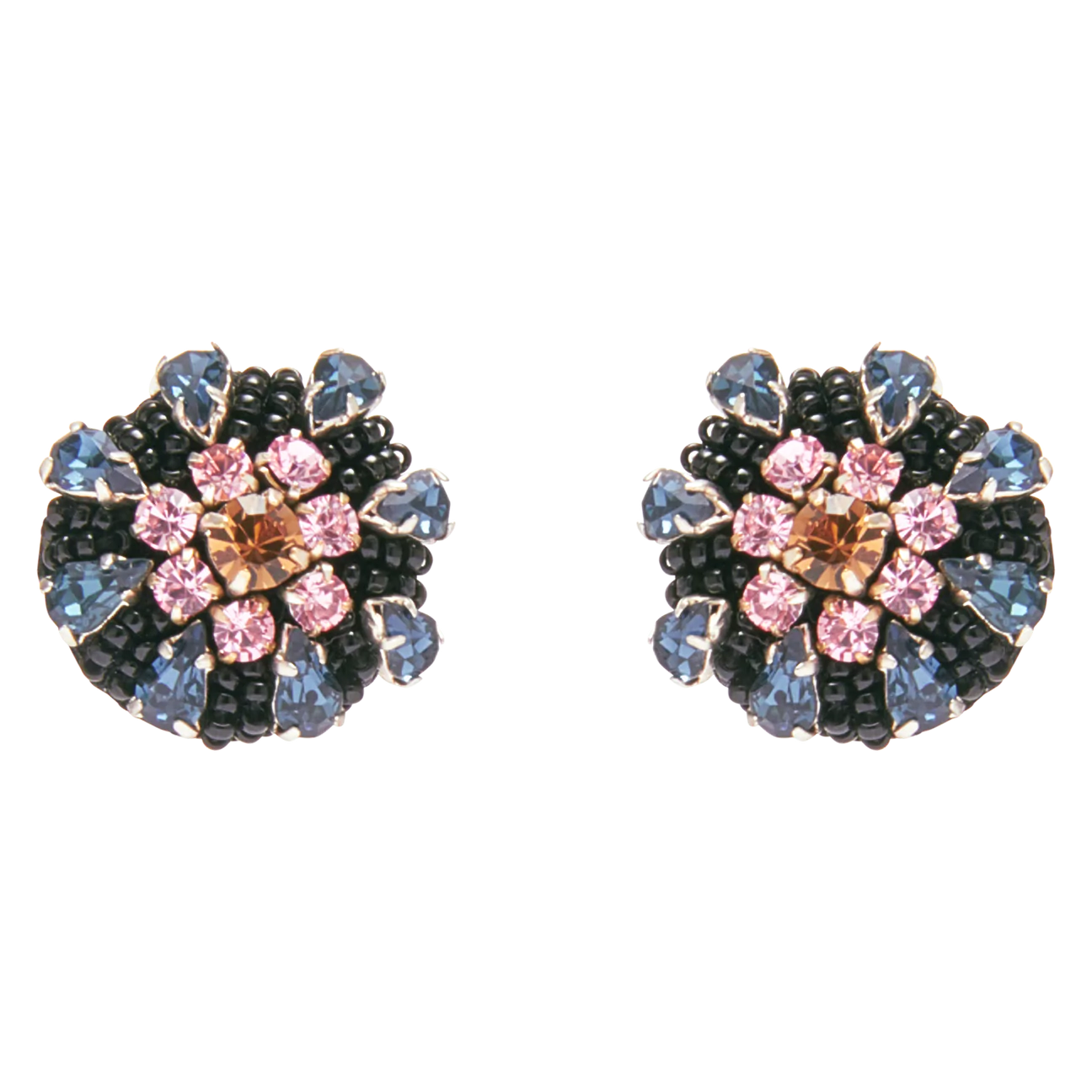Crystal blooms reminiscent of the beautiful inside of anemone, translated through crystals in a deep shade of navy and rich mauve palette. A nice, smaller size stud that we love styled with crisp button downs and our Frida scarf necklace.