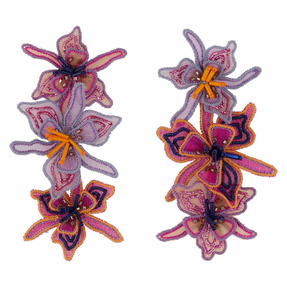Transform your look with the Mignonne Gavigan Xia Earrings in Purple Multi. These statement pieces feature captivating triple-tiered petals in lilac, magenta, and tangerine that mimic a blooming garden. Expertly crafted with intricate details, these eye-catching earrings will elevate any outfit from ordinary to extraordinary. Make a lasting impression with these wearable works of art.