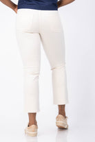 The Elliott Lauren Ankle Pant in Ecru offers a sleek, ankle-length fit that effortlessly pairs with a cream top for a chic, minimalist look. Perfect for styling with booties or flats, these pants balance comfort and style, making them a versatile addition to your wardrobe that transitions seamlessly from day to night.