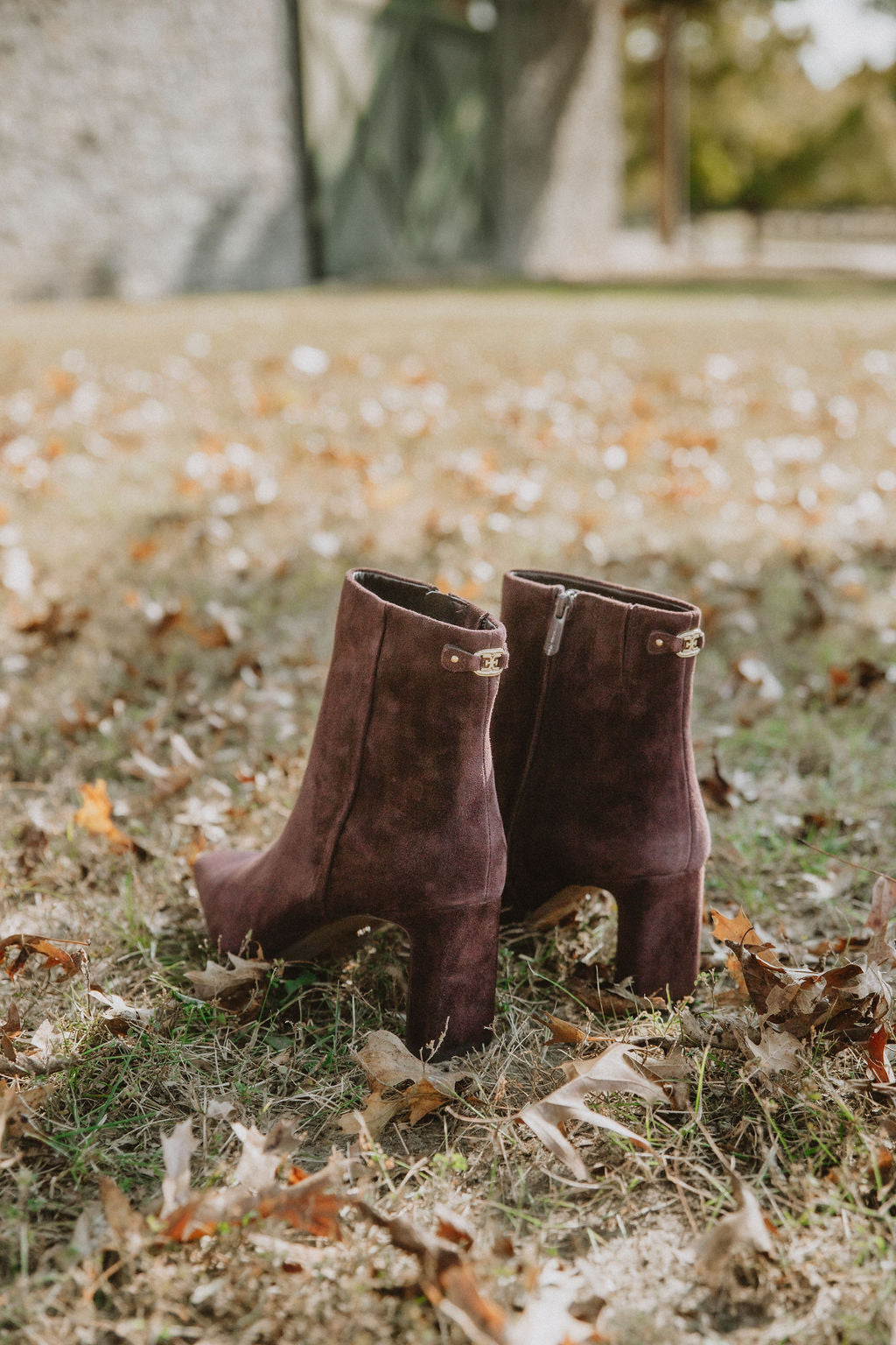 Introducing the Sam Edelman Saige Ankle Bootie in Cafe Noir Brown Suede. With its unique architectural heel detail, the Saige adds a touch of elegance to any outfit. Elevate your style and confidence with this must-have accessory that pairs perfectly with your favorite LBD or wrap dress.