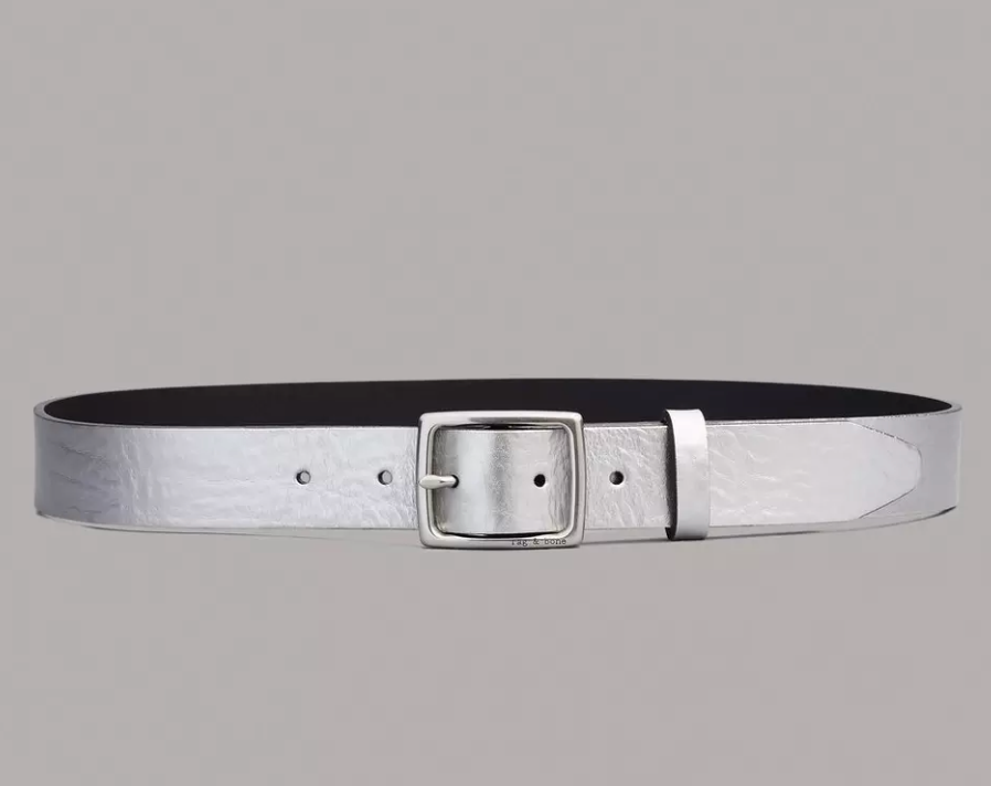 Crafted in 100% cow leather, this belt features a boyfriend buckle with two toned metal finishing and a 30mm width. Custom hardware with a dull nickel finish. Available in Gunmetal.