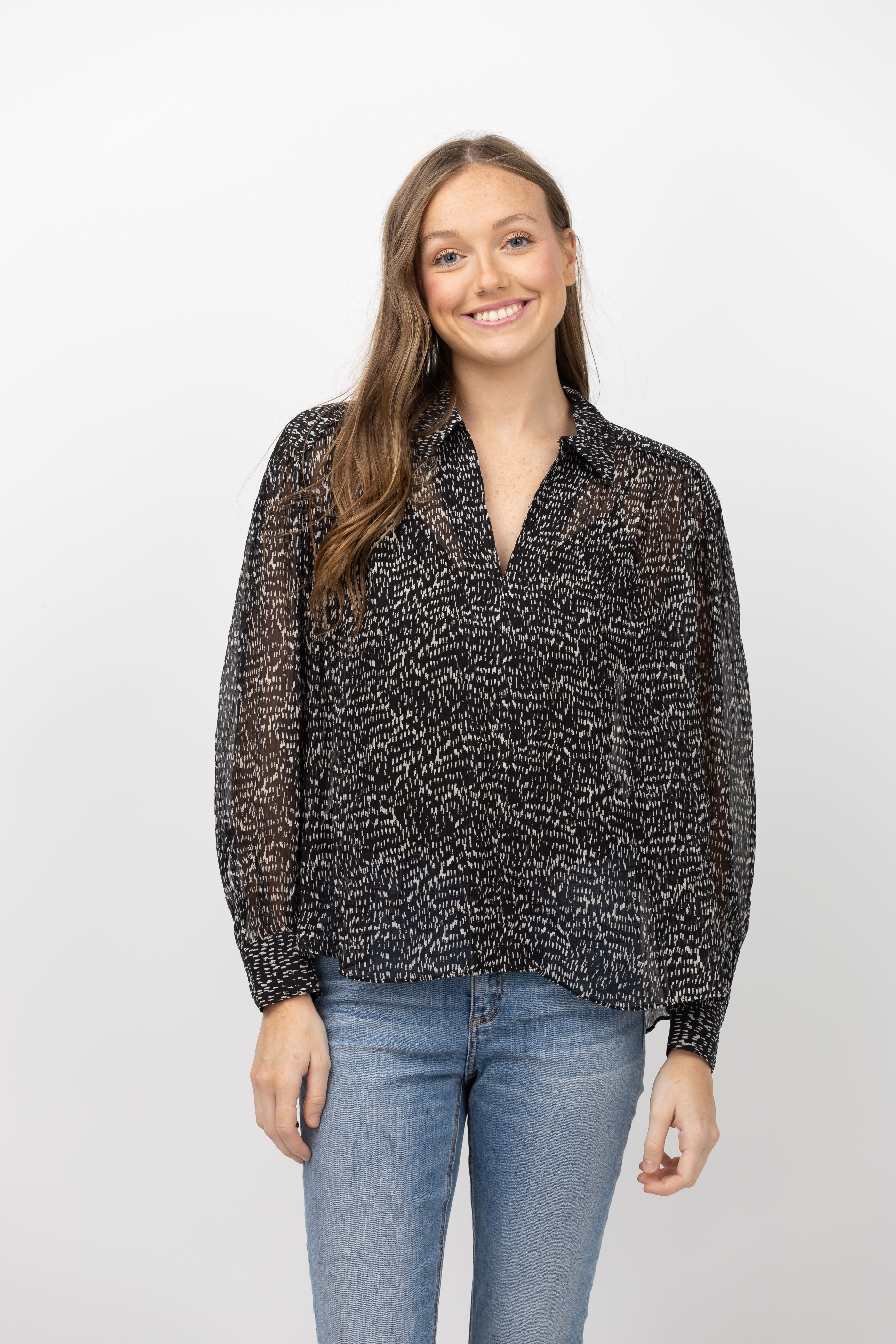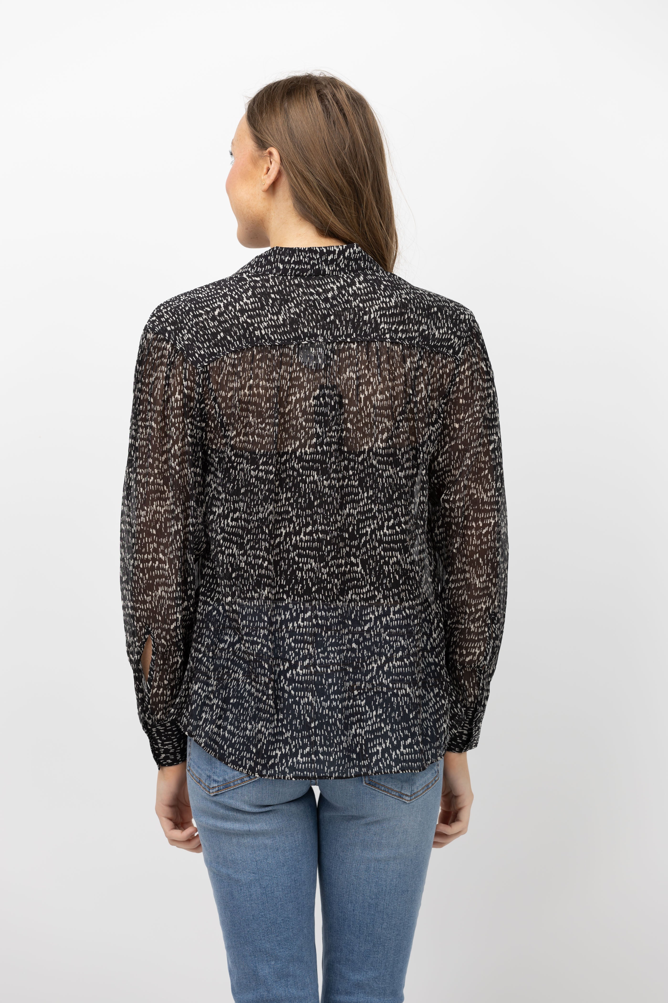 Our Rag & Bone Emmy Silk Top in Black Multi is the epitome of effortless chic. Made from a luxurious silk-blend chiffon, this top features a stunning print and is partially secured with hook-and-eye closures. The separate camisole adds an extra layer of sophistication. Elevate any outfit with this versatile and stylish top!