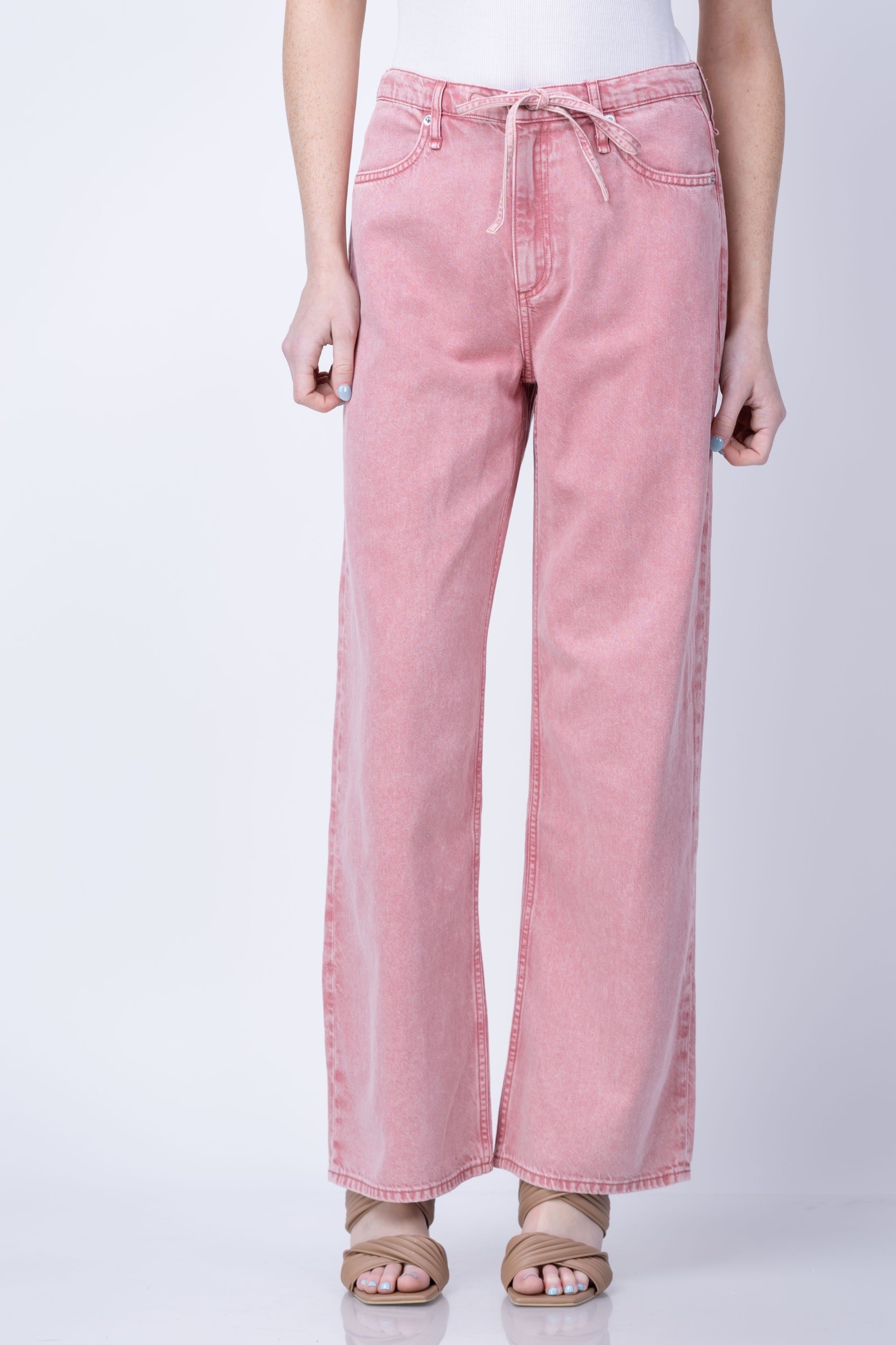 Rag & Bone Phoebe Drawstring Wide Leg Jeans in Raspberry