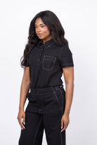 Rag & Bone Irina Contrast Stitch Polo Top in Black