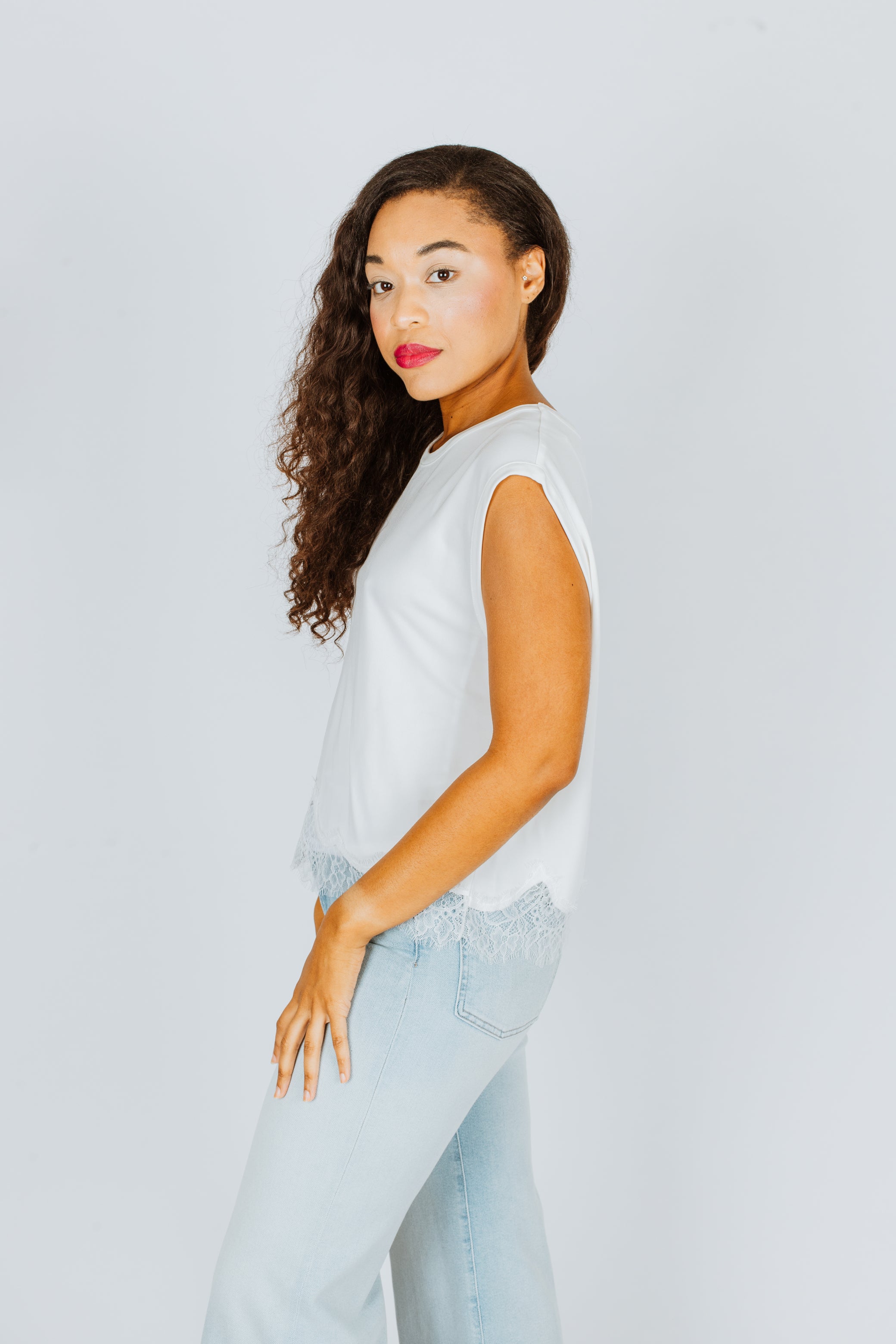 Featuring a delicate lace hem, rag & bone's boxy muscle knit top is detailed with a crewneck.