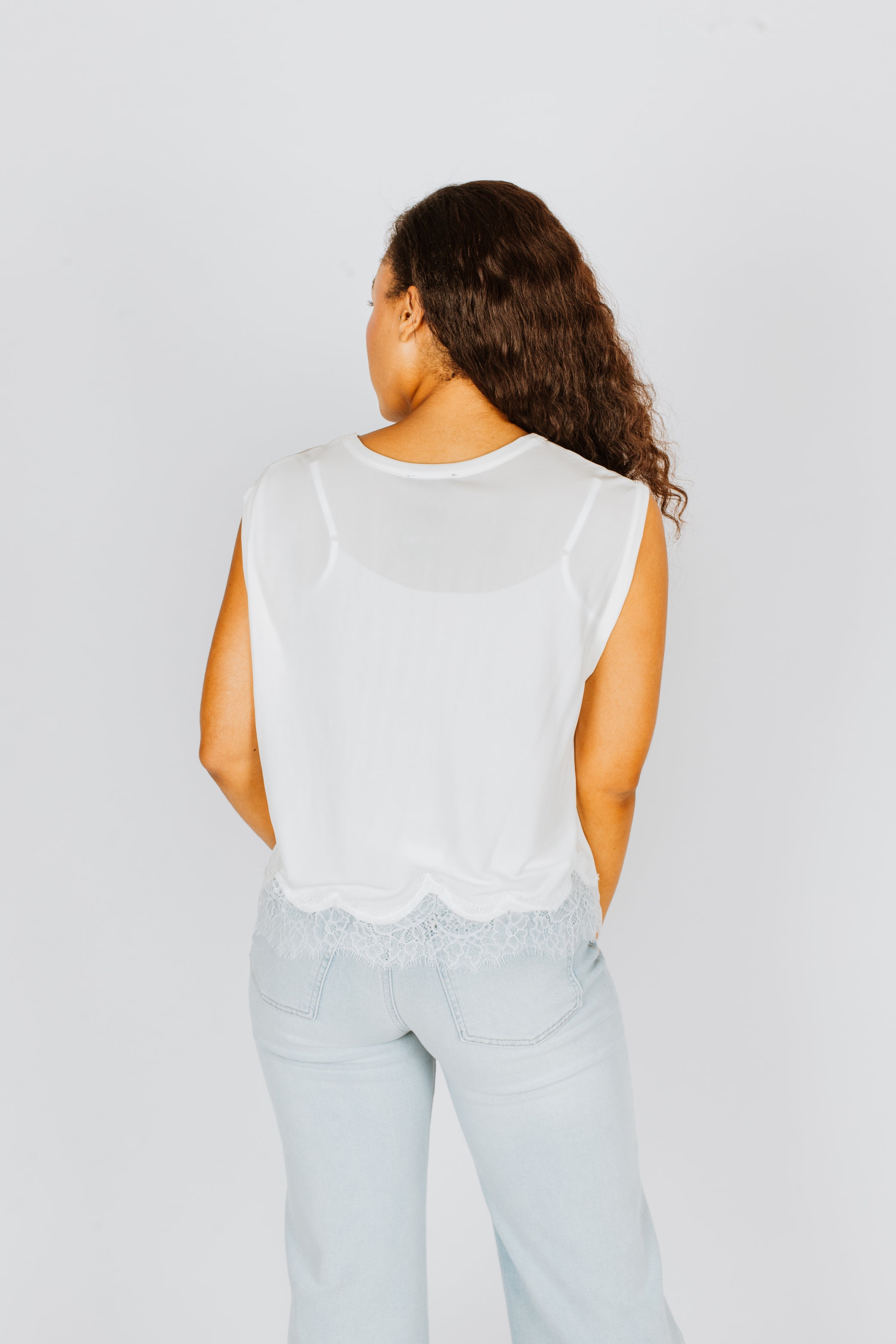 Rag & Bone Lace-Trimmed Knit Muscle Top White
