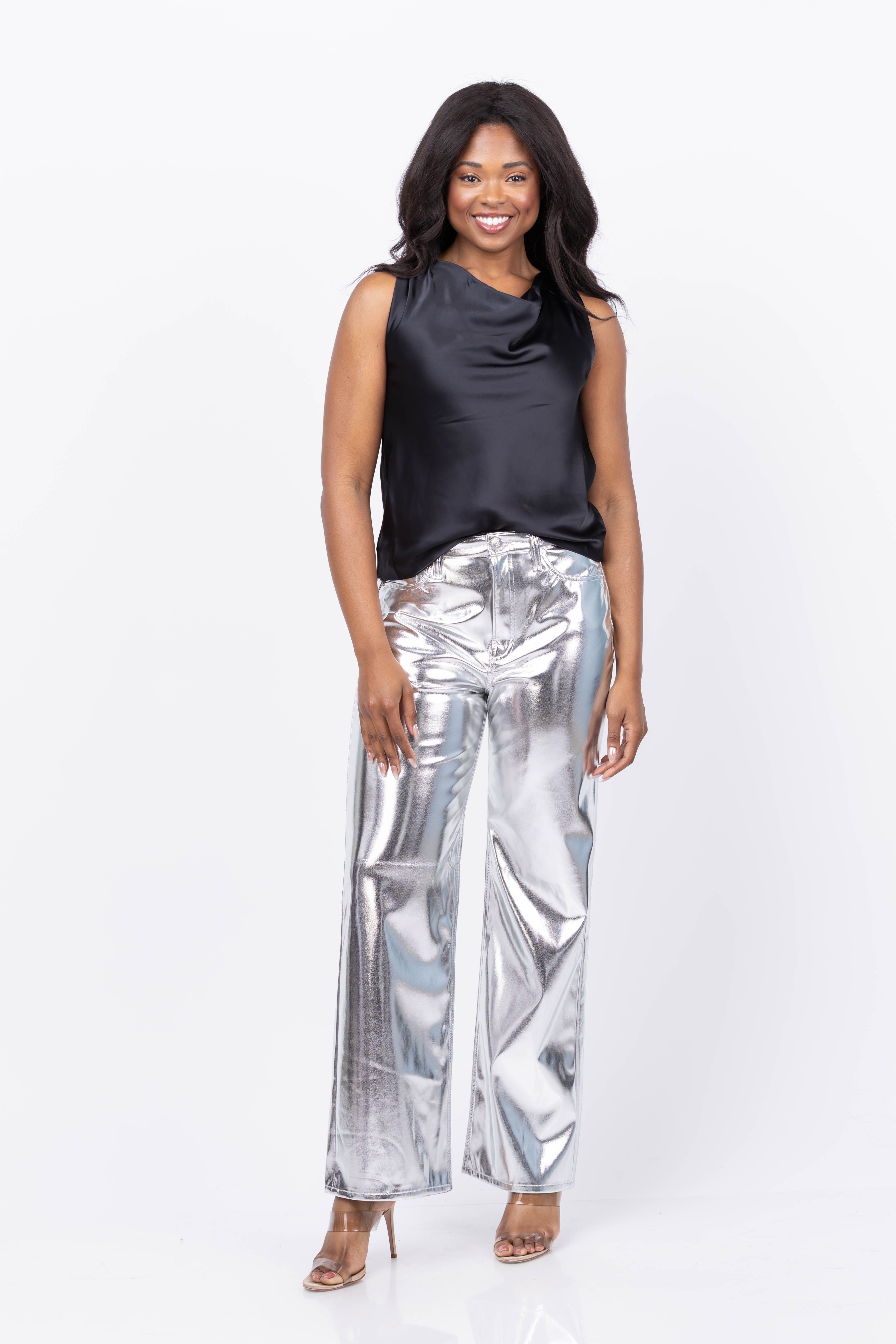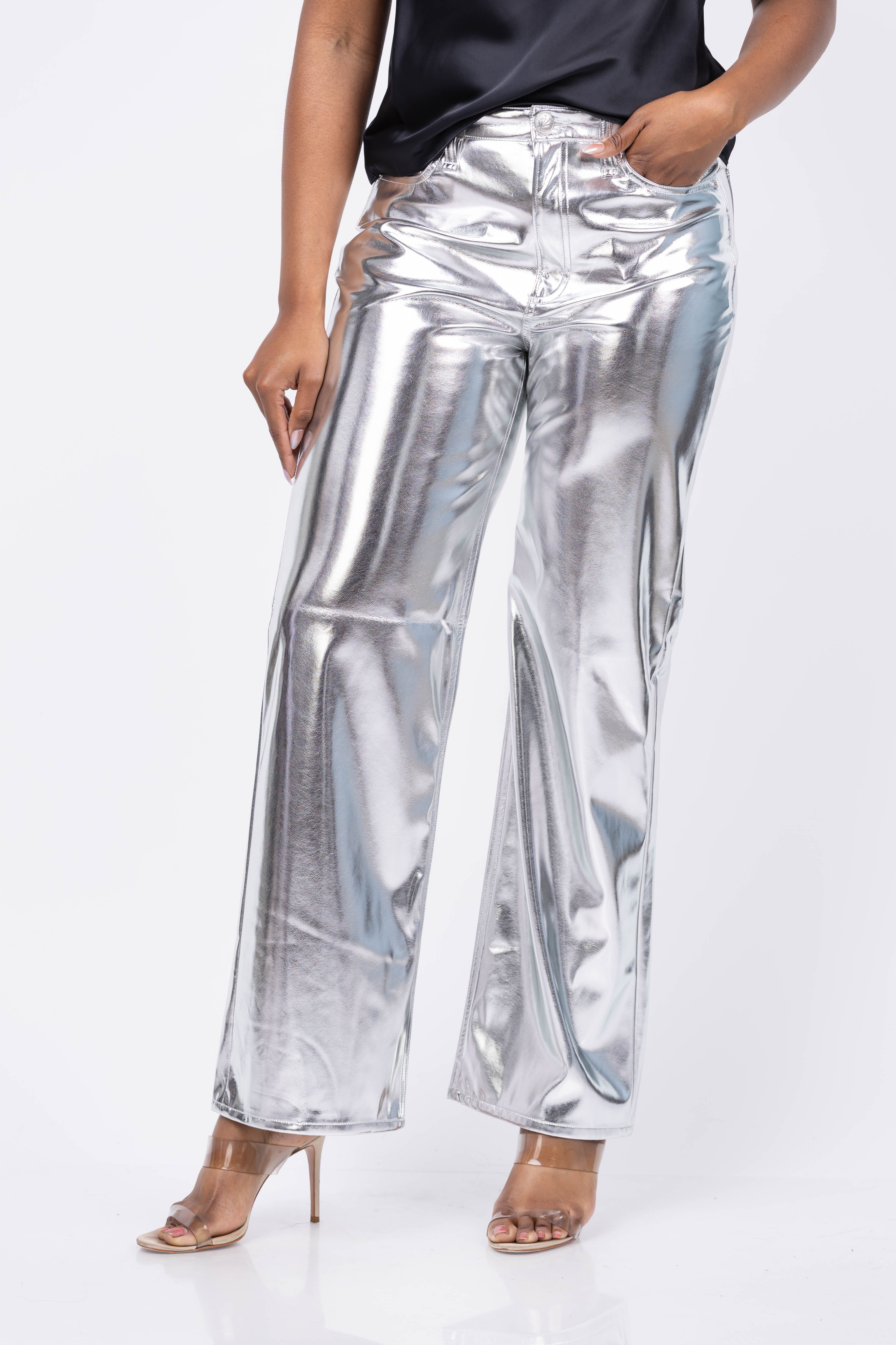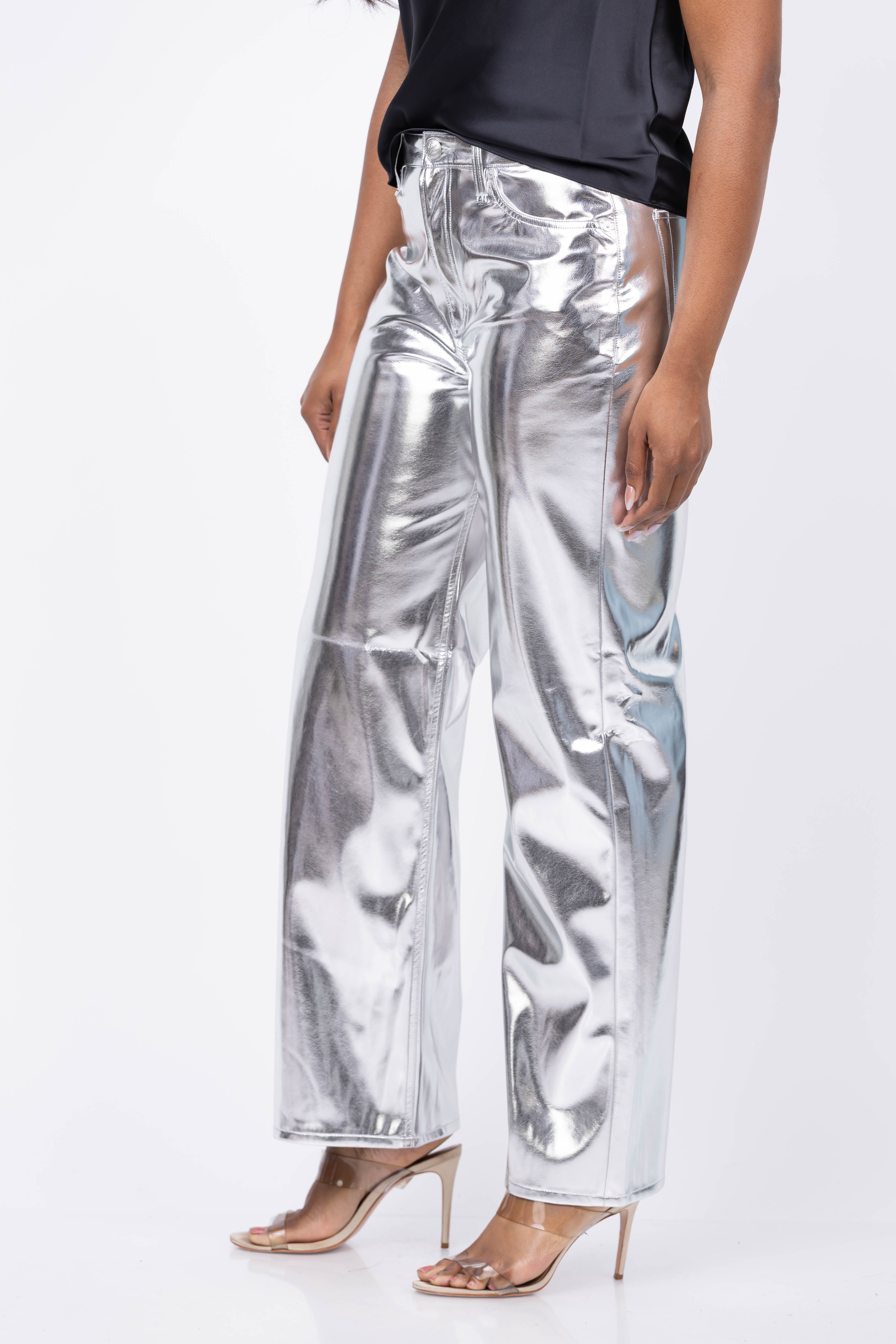 Experience the perfect blend of comfort and style with the Rag & Bone Logan Faux Leather Wide Leg Pant in Silver. These mid-rise pants feature a roomy cut for all-day ease, now elevated with a soft, eye-catching silver faux leather that adds a modern edge. Effortlessly versatile, they pair beautifully with cozy knit sweaters or classic cardigans, making them a standout piece for any laid-back yet polished look. Embrace playful sophistication and elevate your wardrobe with these statement pants today.