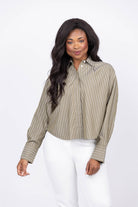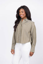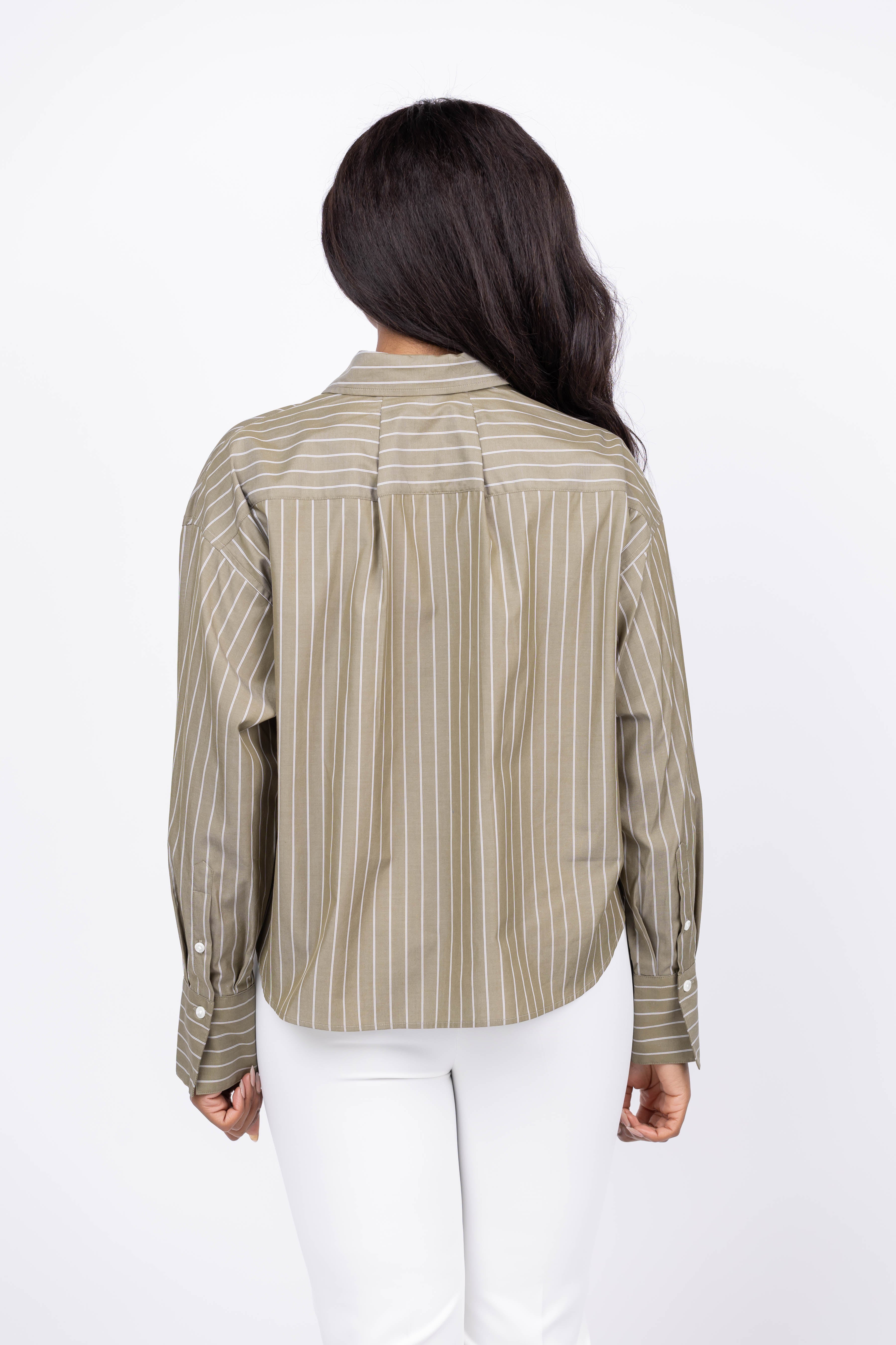 Rag & Bone Martha Poplin Striped Shirt in Green Stripe