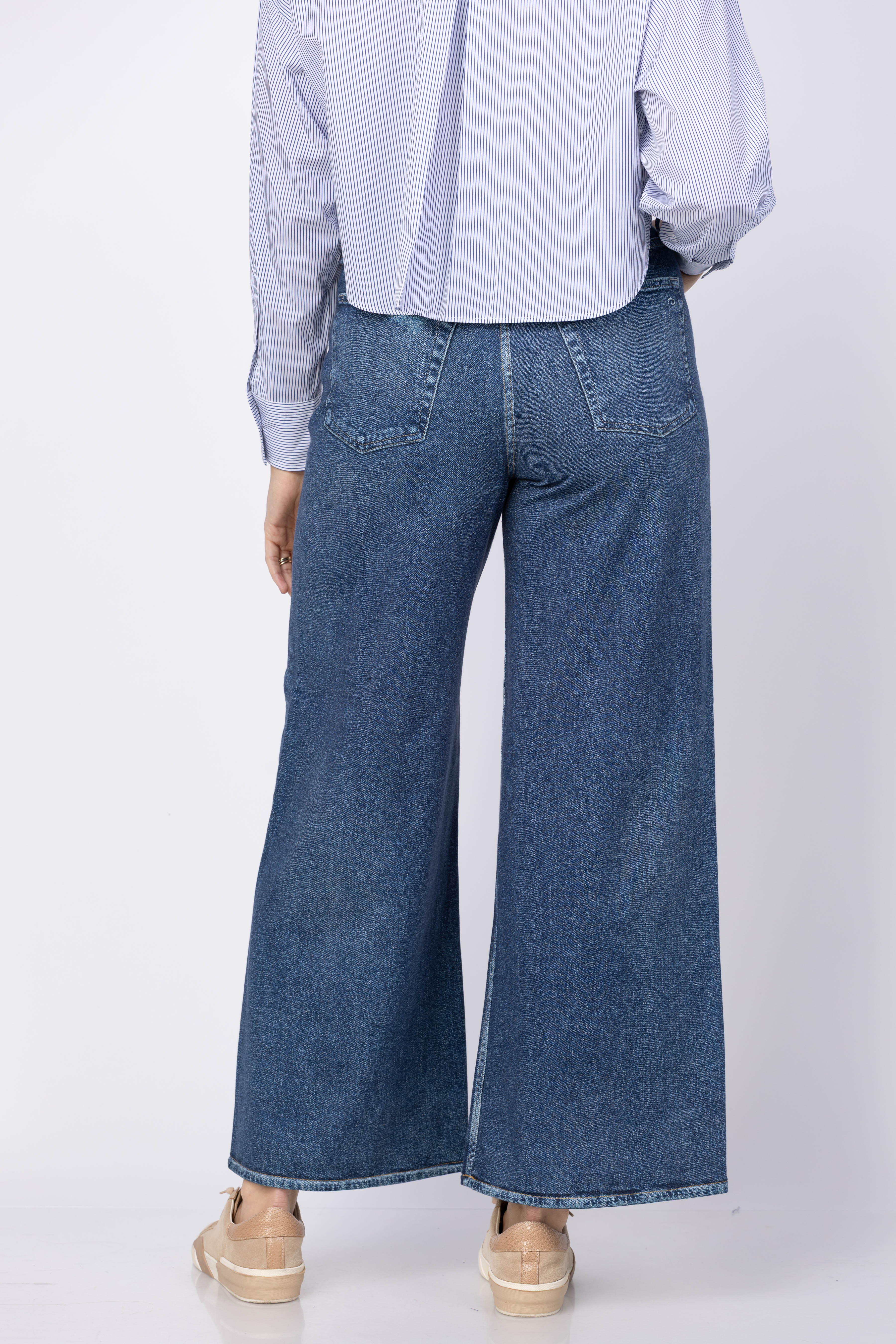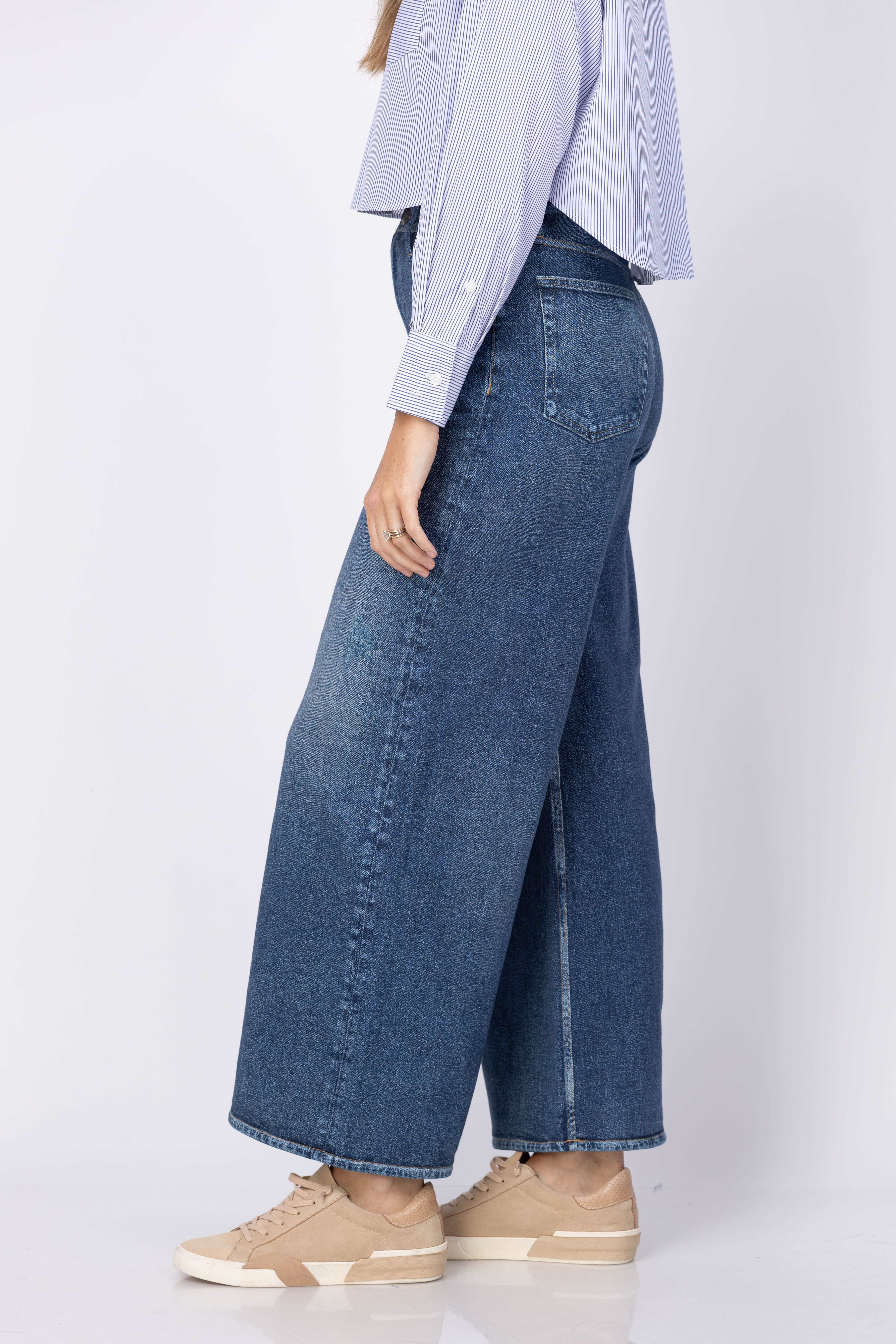 Experience the perfect blend of comfort and style with the Rag & Bone Miramar Terry Sofie Ankle Pant in Venice. Crafted from ultra-soft cotton terry cloth, these high-rise pants feature a unique Miramar print that replicates classic denim for a fresh, modern look. Designed with super-wide legs and flared hems that hit at the ankle, they provide a flattering silhouette while offering functional belt loops, front scoop pockets, and a convenient zip fly with button closure. Elevate your wardrobe with pants that feel as good as they look, combining the ease of loungewear with the appeal of your favorite jeans.