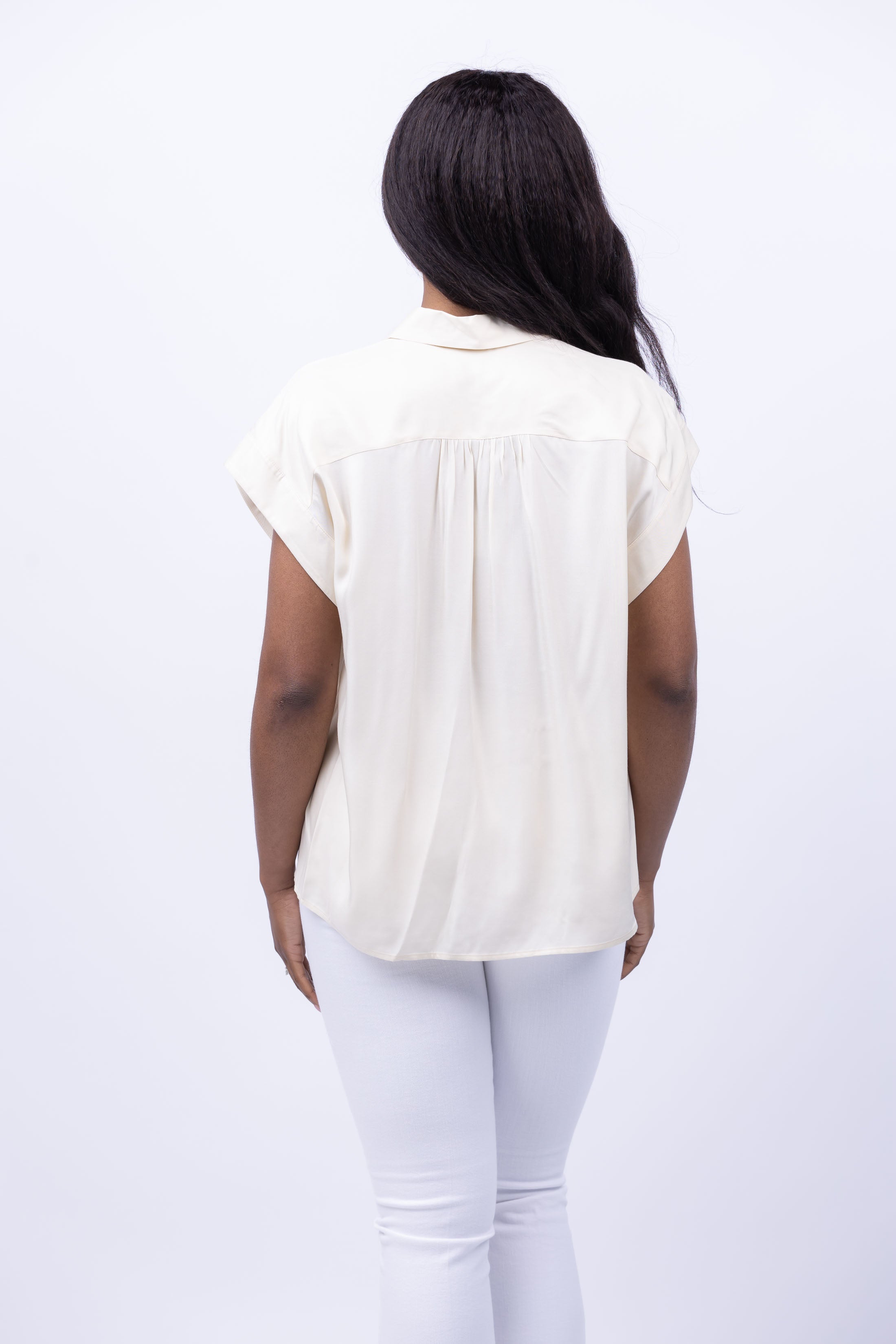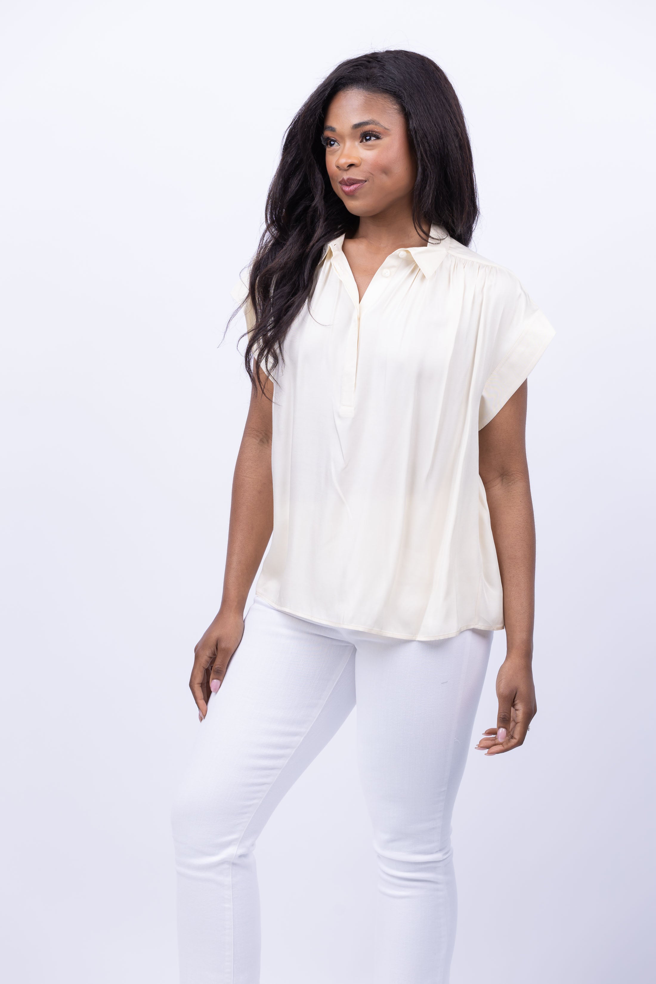 Experience luxury and style with rag & bone's Robin Silk Top! Made from a silk blend, this top boasts a spread collar, short sleeves, and pleated shoulders for a subtle yet elegant look. Upgrade your wardrobe and elevate your everyday style with this must-have piece.