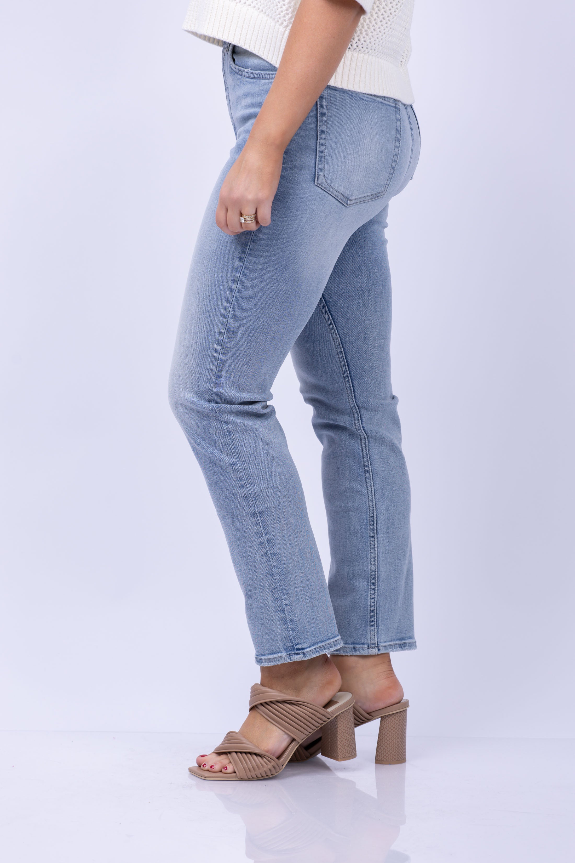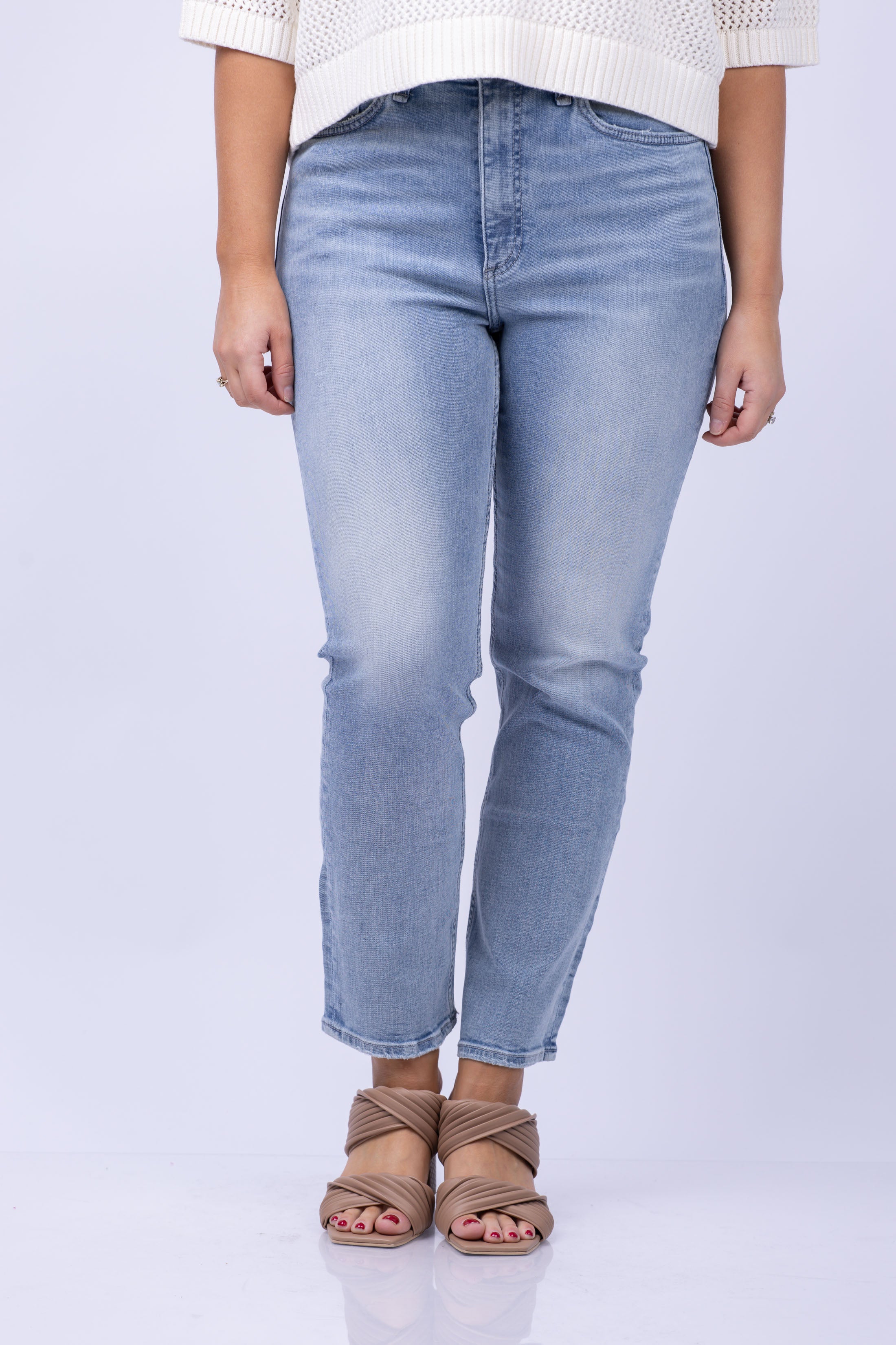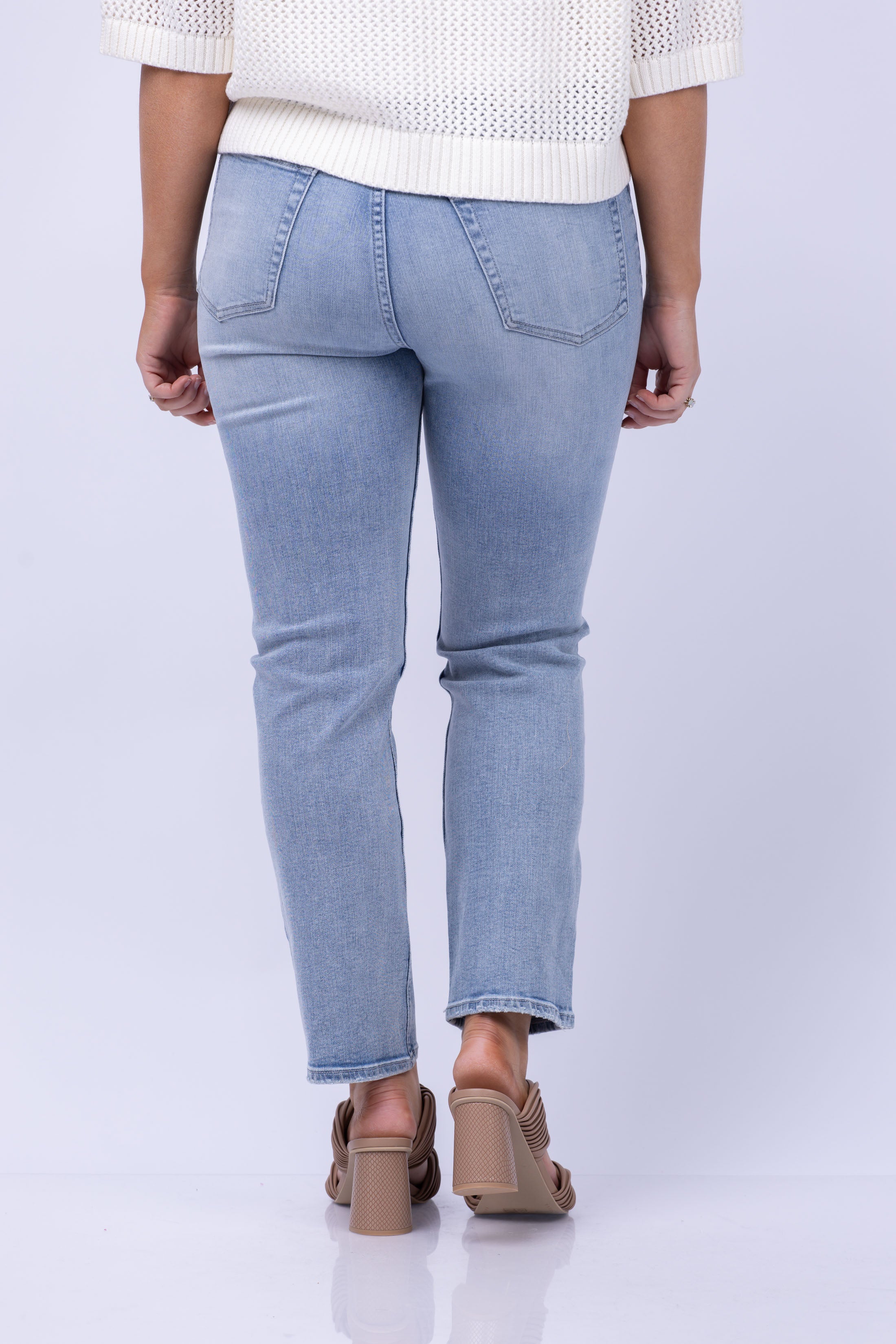 The Rag & Bone Wren is the perfect blend of skinny and straight, featuring a high-rise fit that hits at the ankle. Made from high stretch denim, it shapes and smooths with generous stretch. Available in Emma, a light blue wash with a clean, finished hem. Elevate your denim game with Wren!