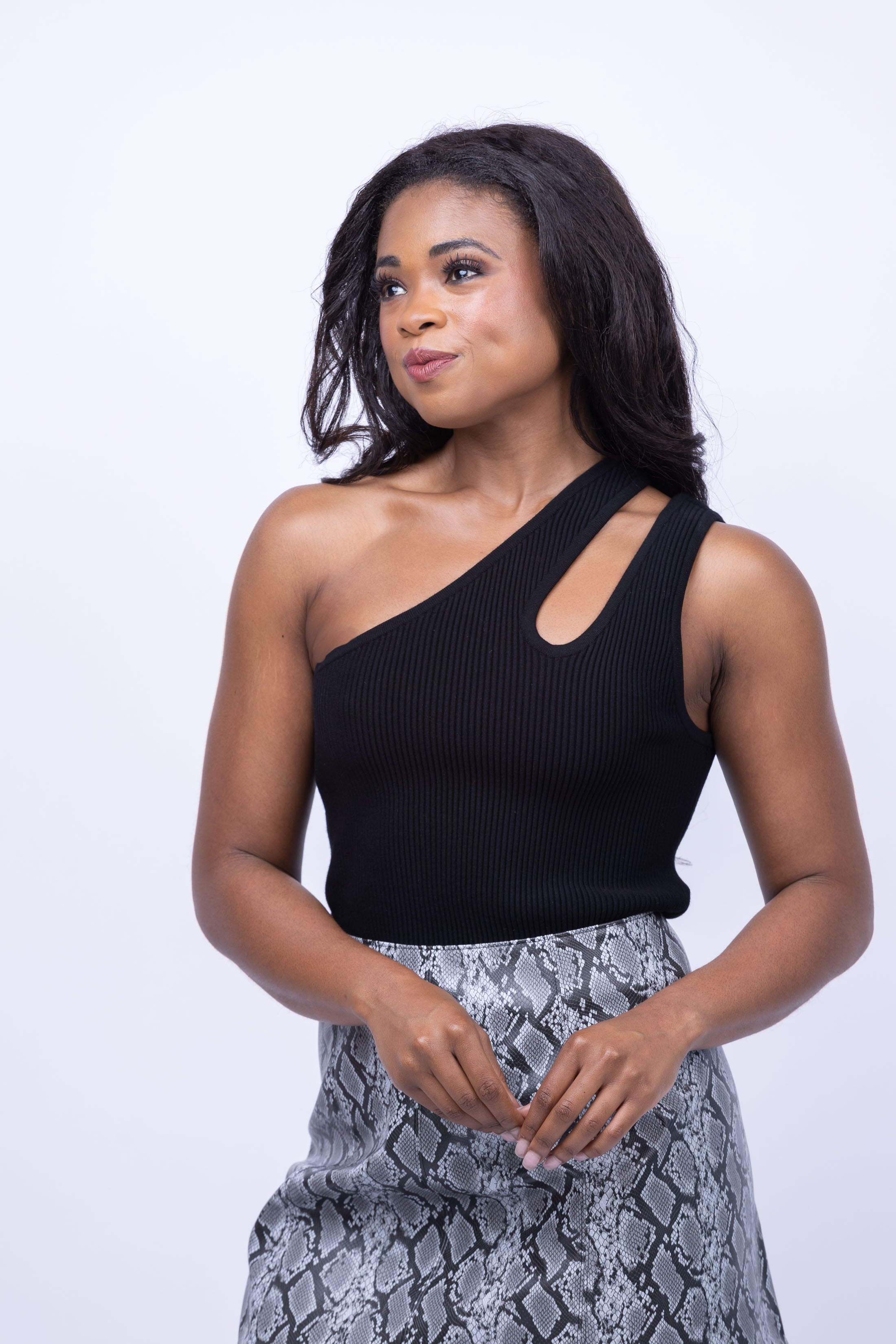 Introducing the Ramy Brook Addilyn Sweater! With its unique asymmetrical neck and single strap with cut-out detail, this pullover style sweater is sure to make a statement. The ribbed texture adds a touch of sophistication and texture to any outfit. Elevate your wardrobe with this must-have piece!