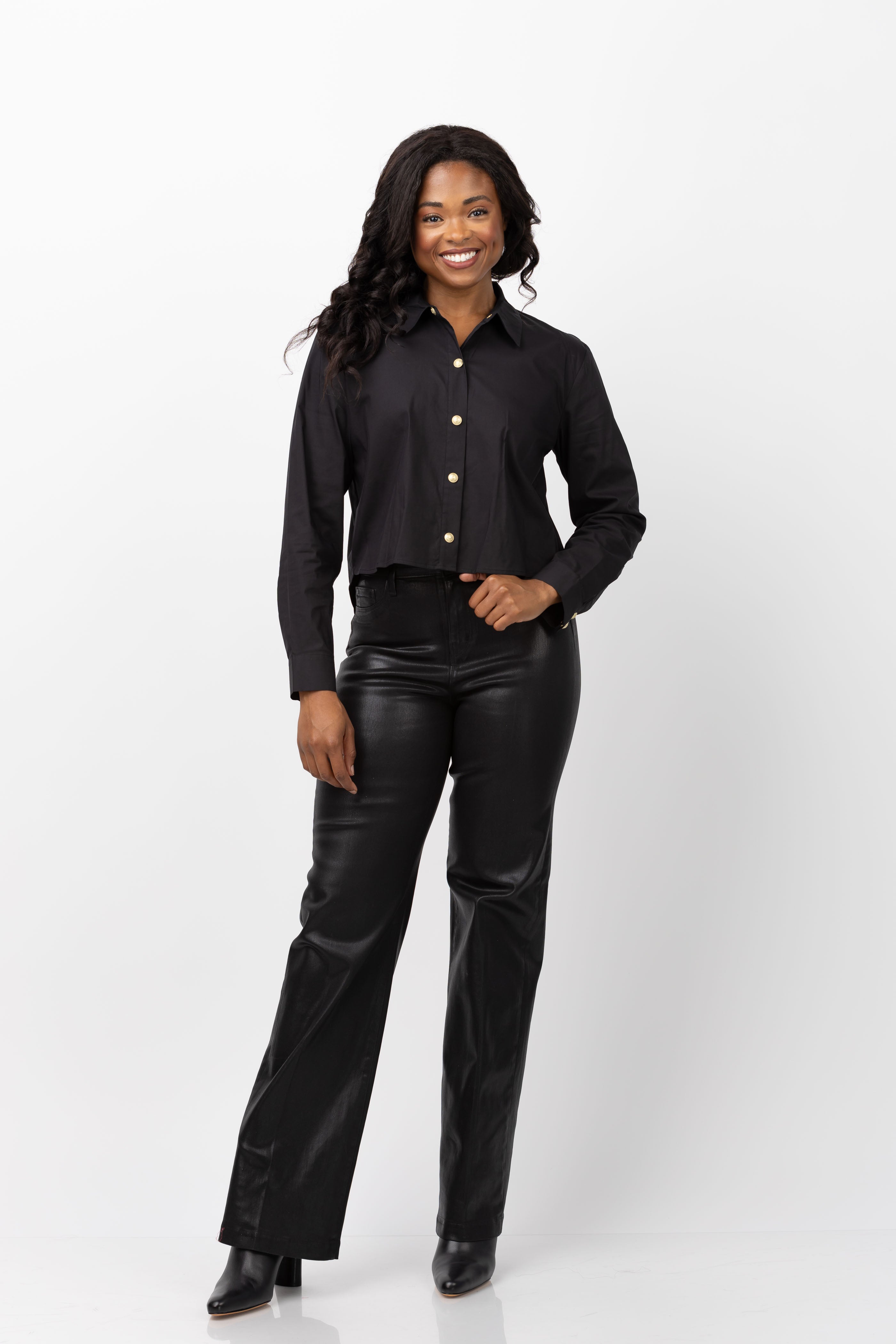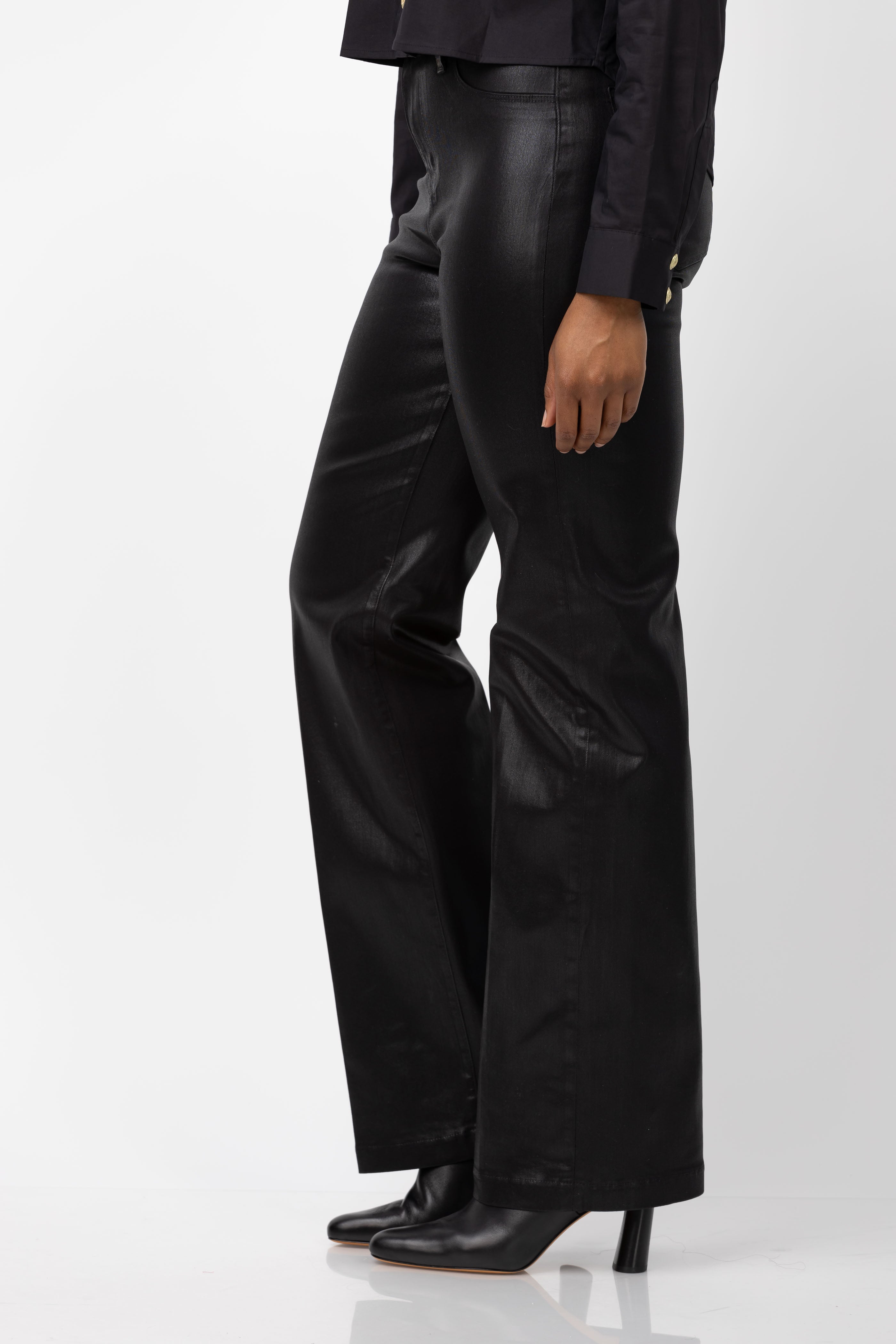 Experience the perfect blend of style and comfort with Lagence Clayton High Rise Wide Leg Jeans in Noir Coated. Featuring our signature tall, wide-leg fit, these jeans hug your hips while providing a flattering silhouette. The contoured waistband ensures a secure fit without any gaps for ultimate comfort. Elevate your wardrobe with these must-have jeans!