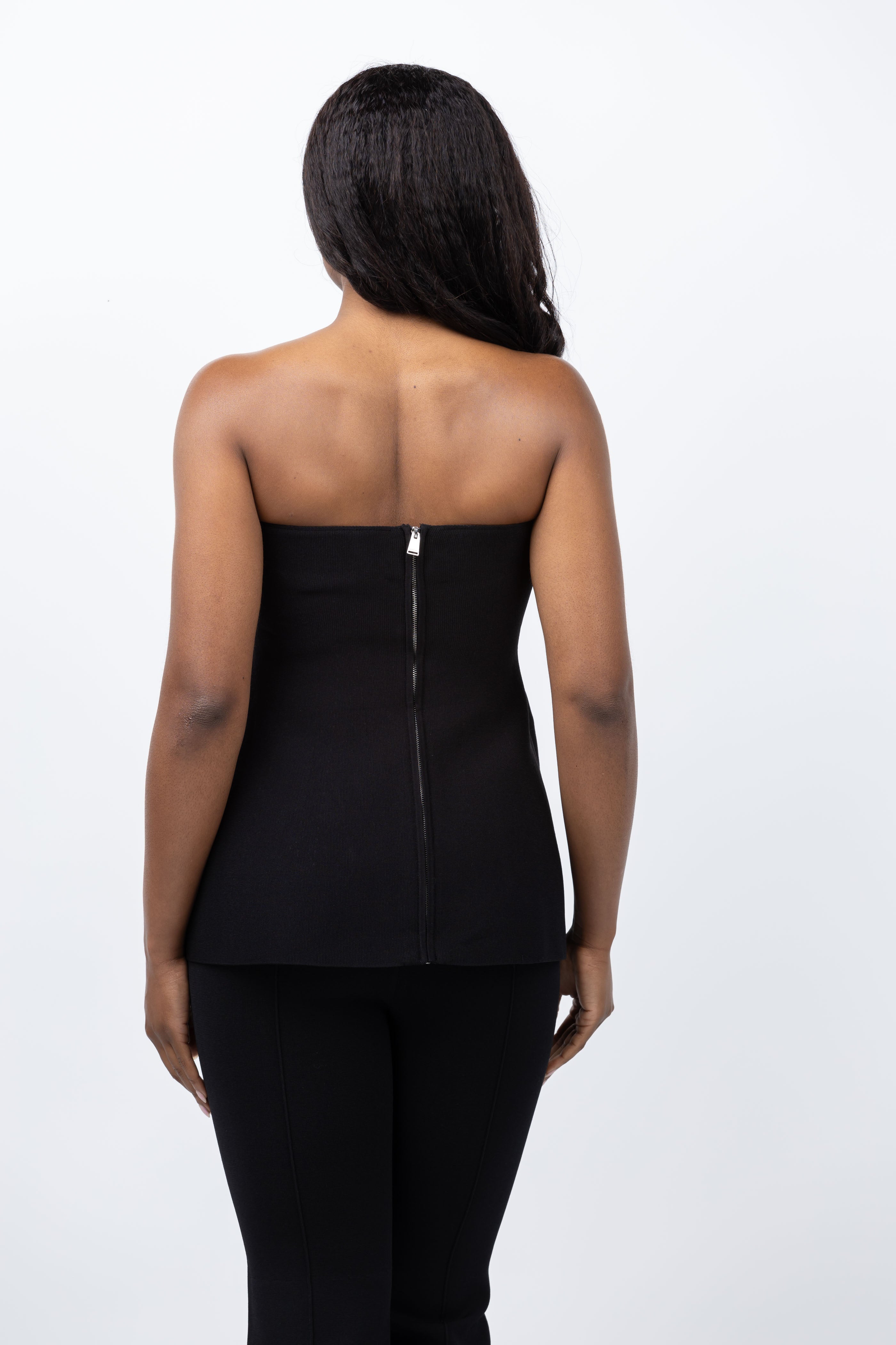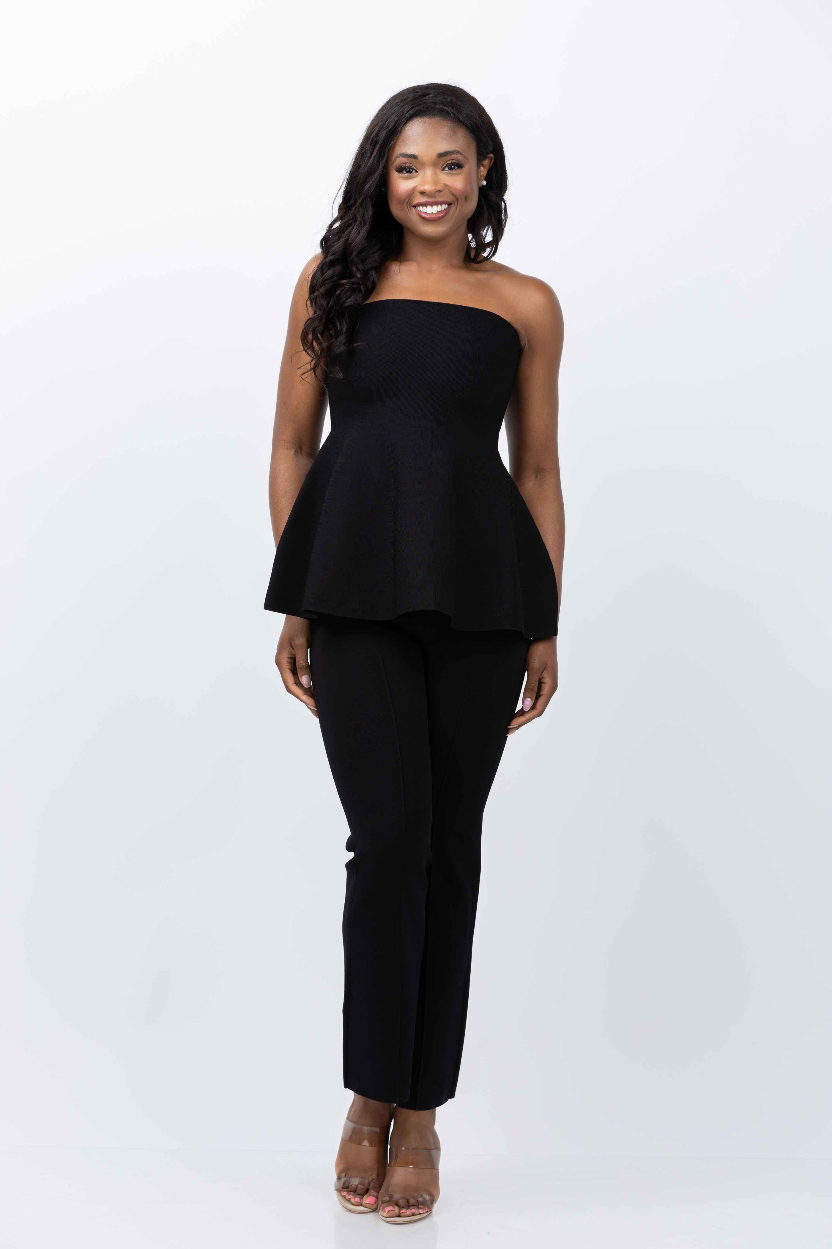 Get ready to turn heads with the Simkhai Ionna S/L Top! This stunning top features a straight, strapless neckline that beautifully accentuates your shoulders and décolletage. The slight peplum flare at the waist adds a touch of playful elegance. Perfect for any occasion, this top will make you feel confident and chic.