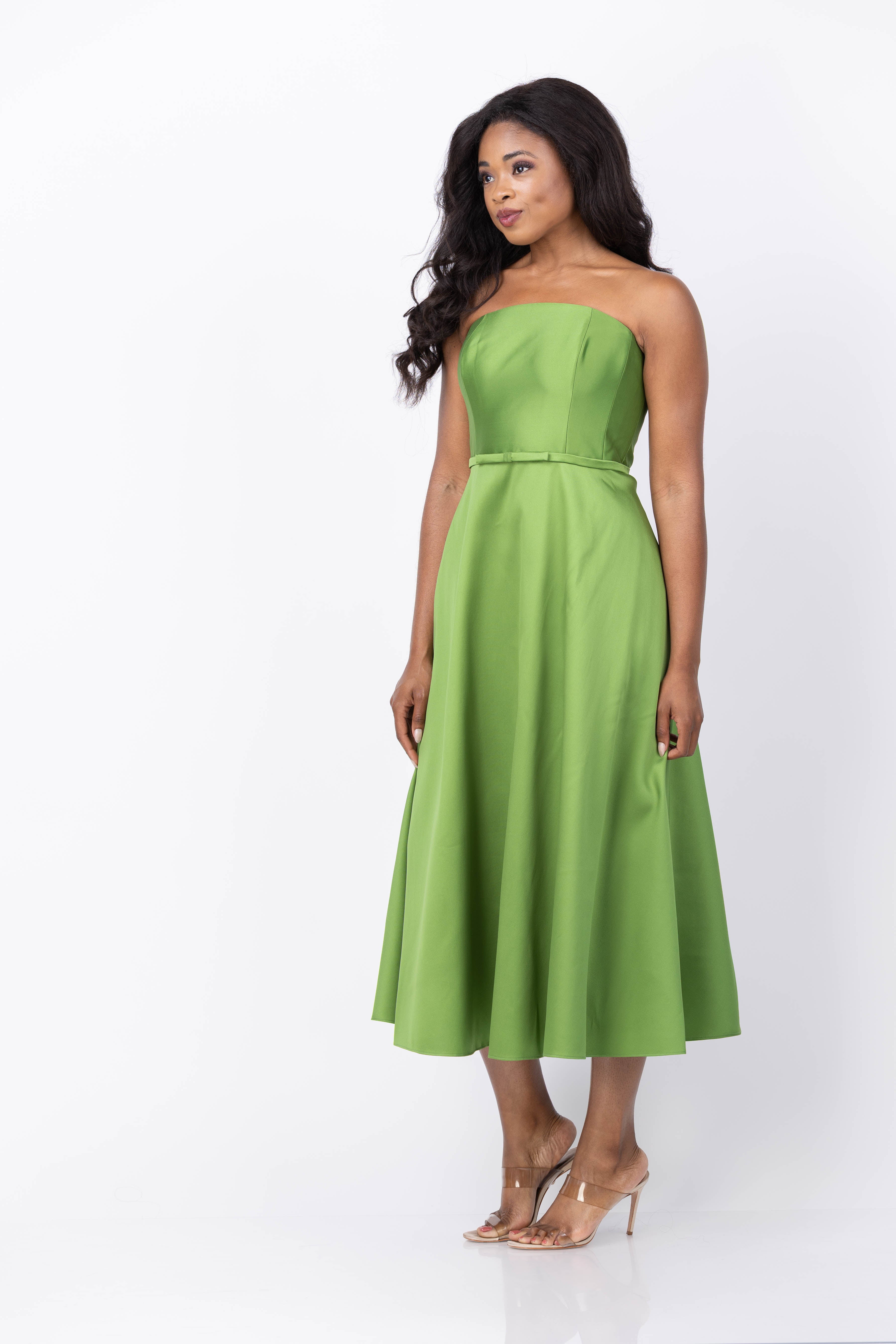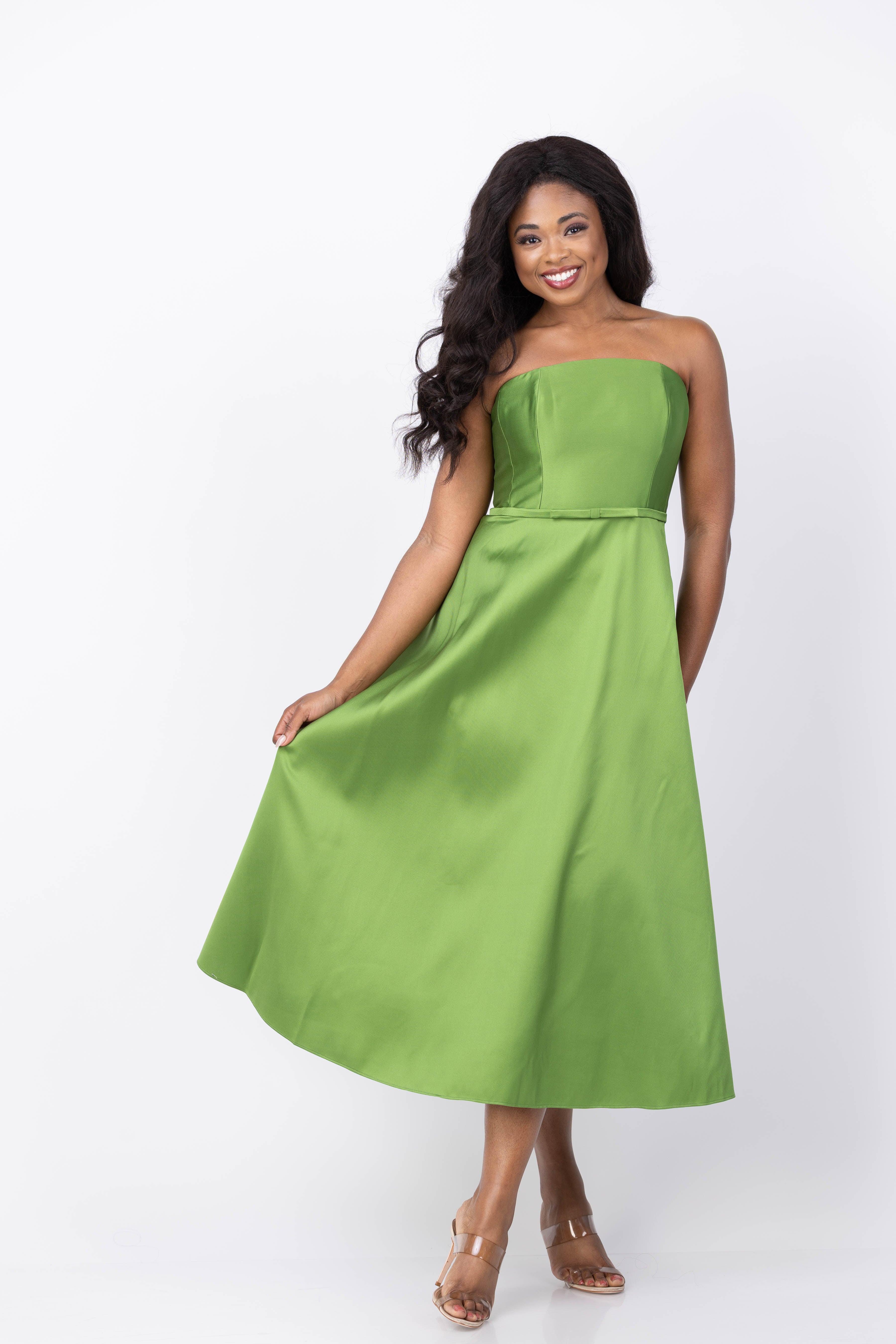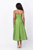 Elevate your special occasion style with the Sachin & Babi Darian Dress in Green Garnet. This strapless tea-length gown, crafted from luminous silk gazar, offers a rare jewel-tone elegance that stands out effortlessly. Its fit-and-flare silhouette sculpts a commanding yet feminine shape, making it a timeless piece that feels both modern and collectible. Perfect for moments when only exceptional will do, this dress blends sophistication with distinctive charm.