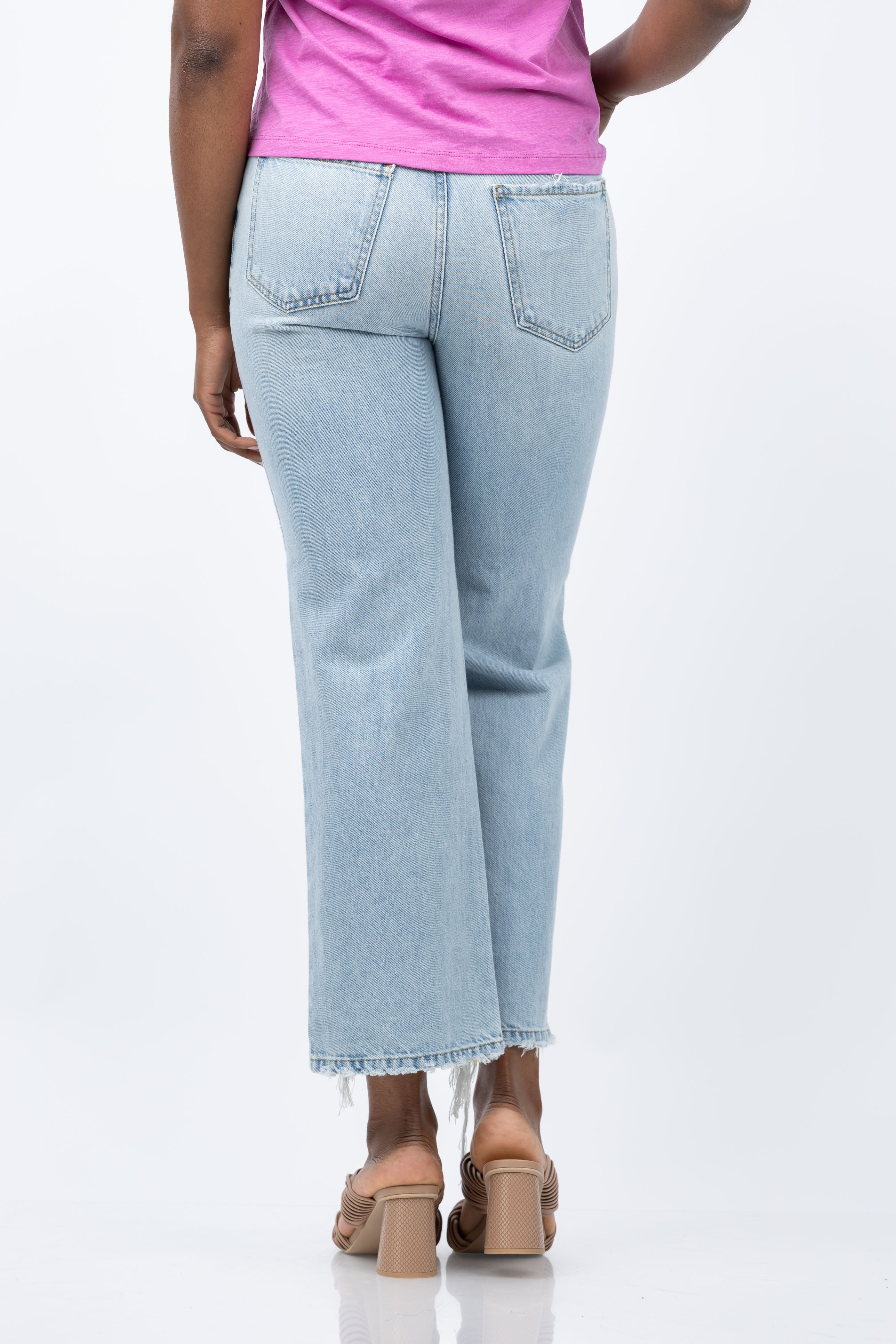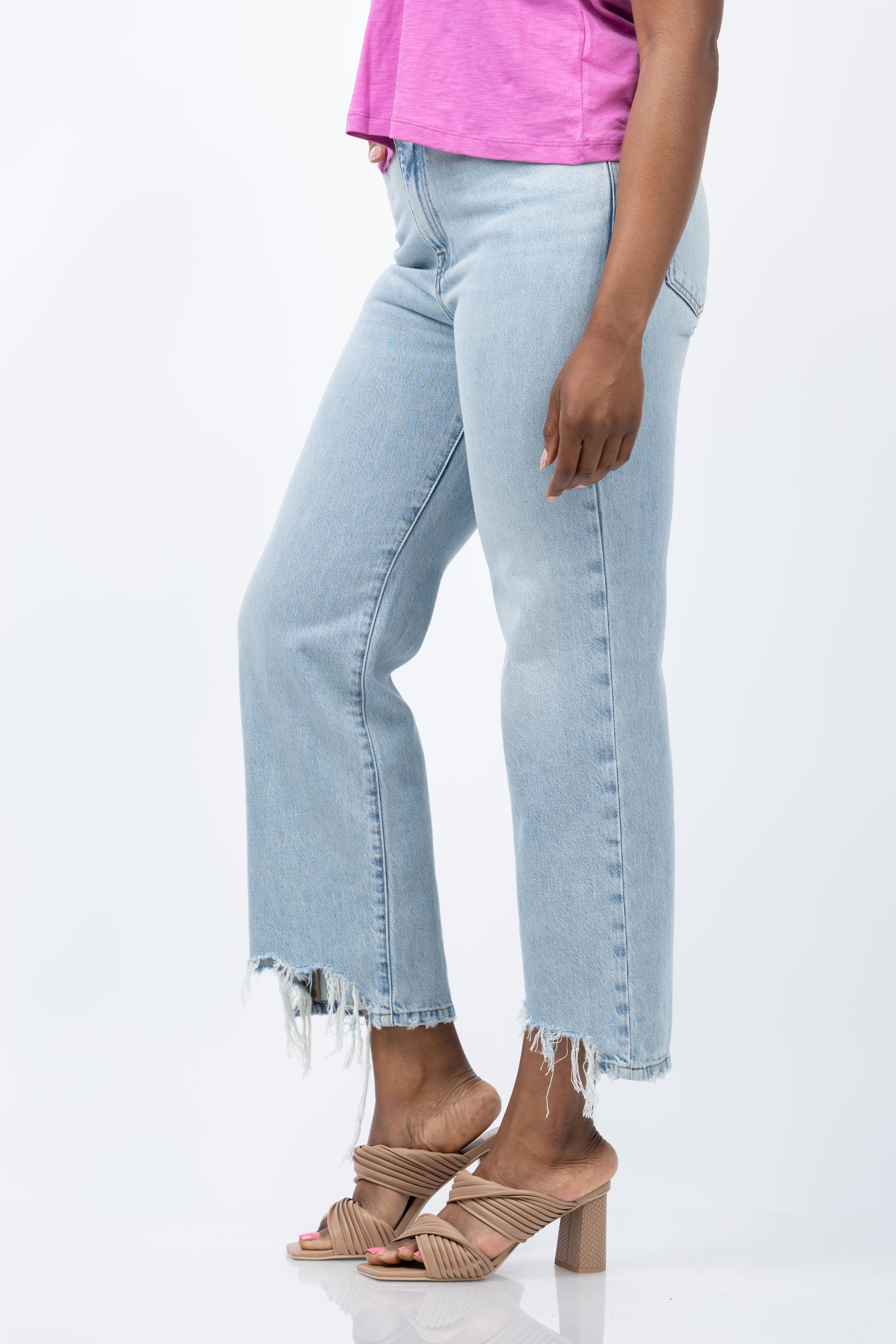 Discover your new favorite pair of jeans with FRAME Le Jane Crop Bit Hem Jeans in Fizz Indigo. These best-selling high-rise jeans are fitted and slightly relaxed for a comfortable yet flattering fit. Made with sustainable denim, they have an edge with an exaggerated frayed hemline. Get ready to feel vintage and confident in these off-duty must-haves.