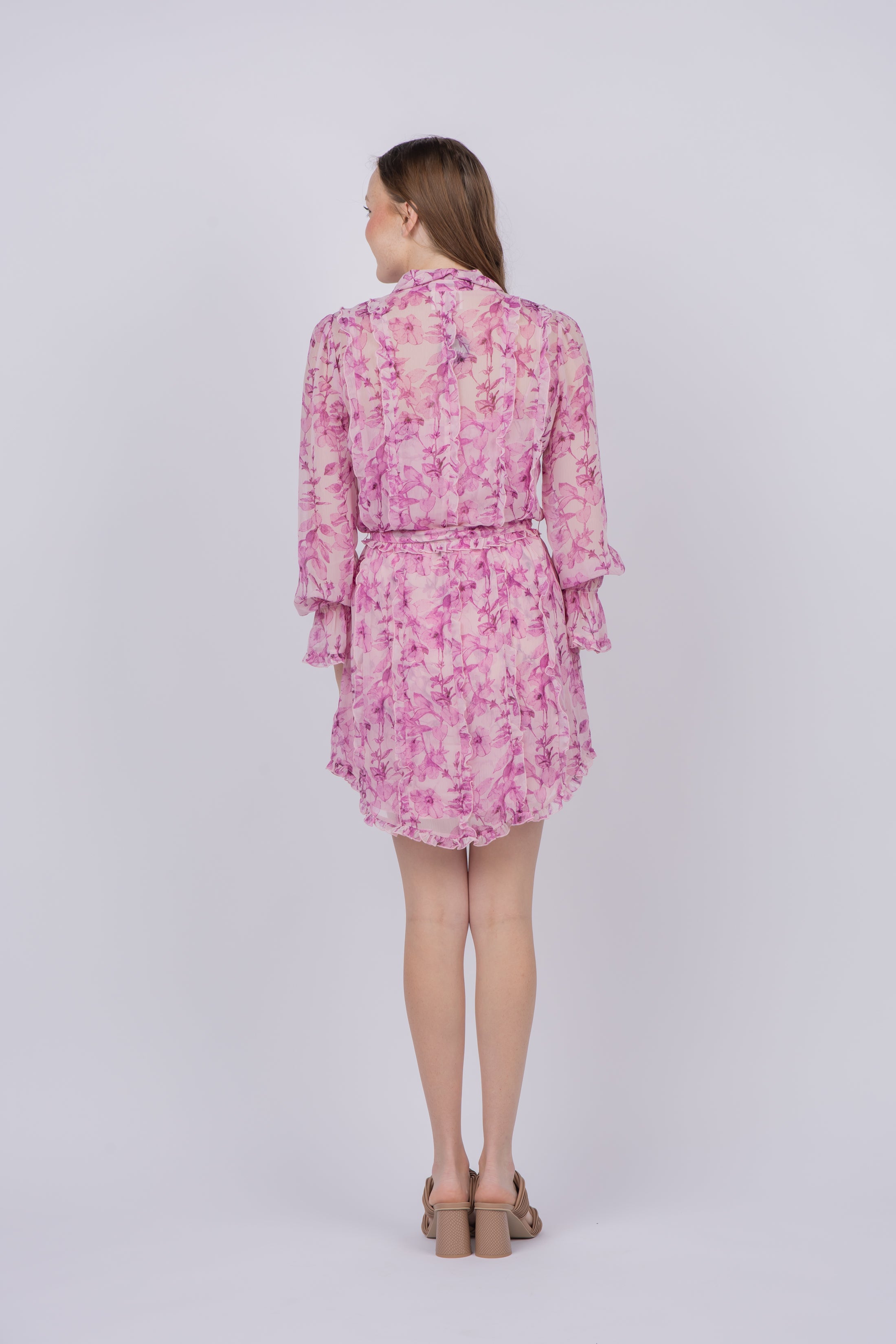 Turn heads in Cinq a Sept's Estelle Dress. Crafted of airy chiffon, this head-turner features cascading ruffle detailing, a point collar, and an allover delicate floral print. The long sleeves, self-tie waist, and button-front closure provide a fashionable fit. Make a truly unforgettable impression!