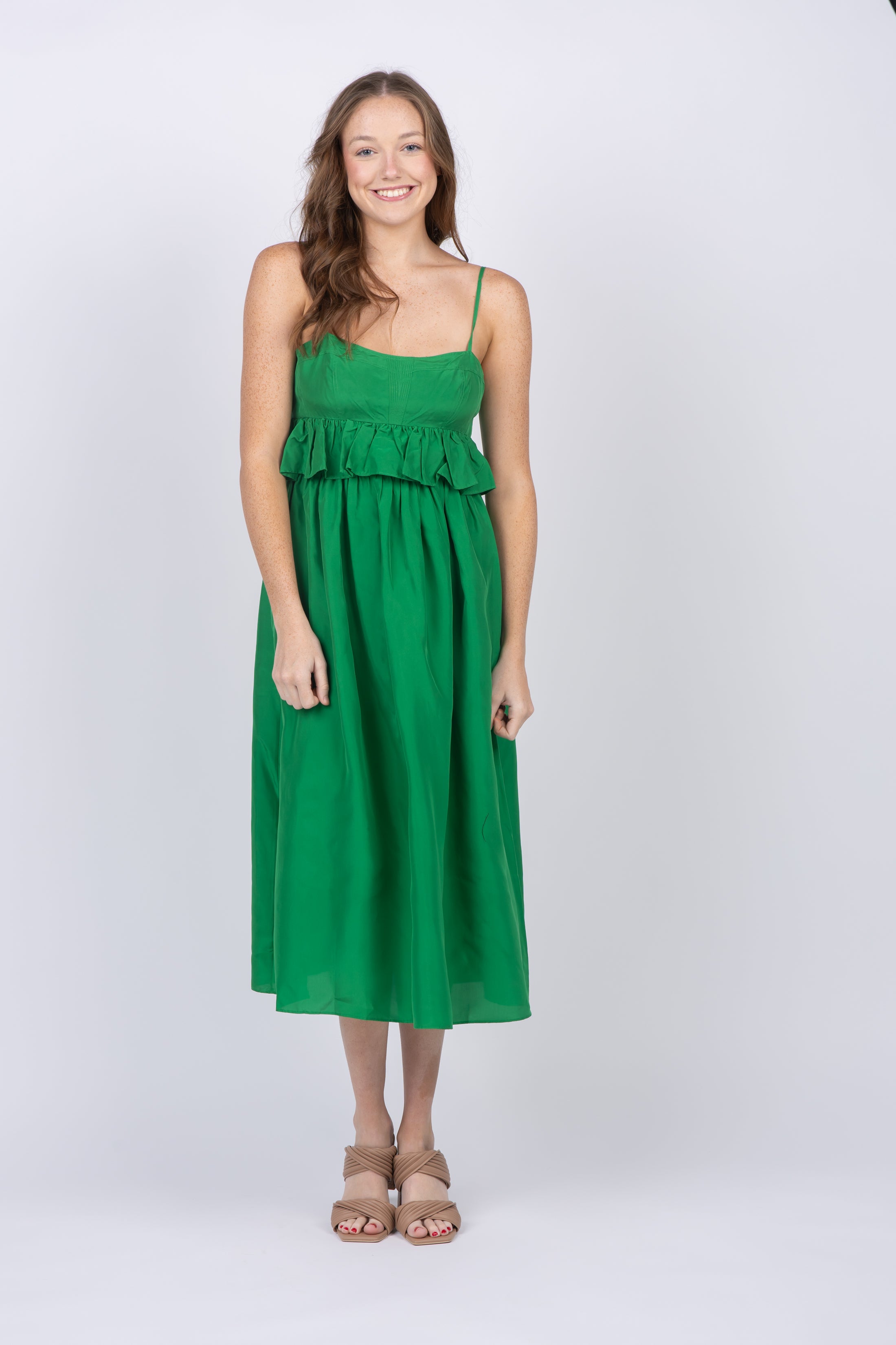 Be the star of any event in the Ulla Johnson Amaliya Dress. Its bold emerald hue, sophisticated midi length, and timeless spaghetti straps will make you shine with effortless elegance. The unique shape and exquisite fit will grant you a confidence like no other, making you feel beautiful and as great as you look!