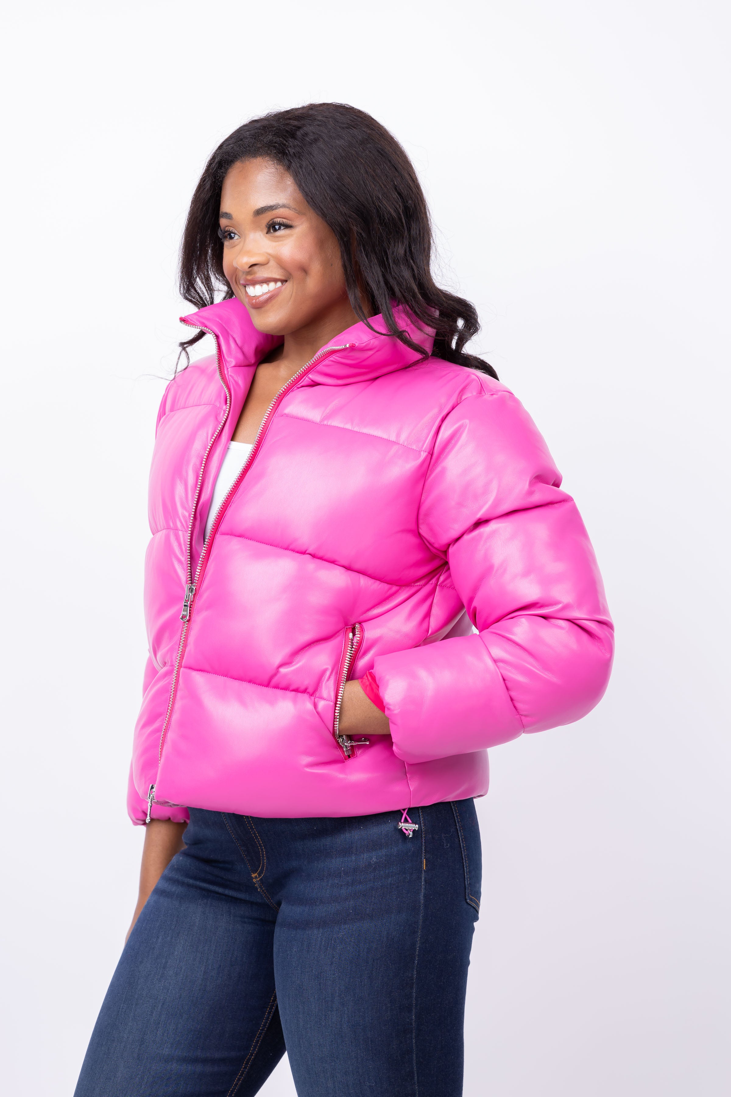 Introducing the L'Agence Larsen Puffer Jacket, the stylish and warm solution for fall-to-winter weather. Made from vegan leather, this jacket guarantees lasting warmth while keeping you on-trend. Stand out in deep pink and embrace the season with confidence.