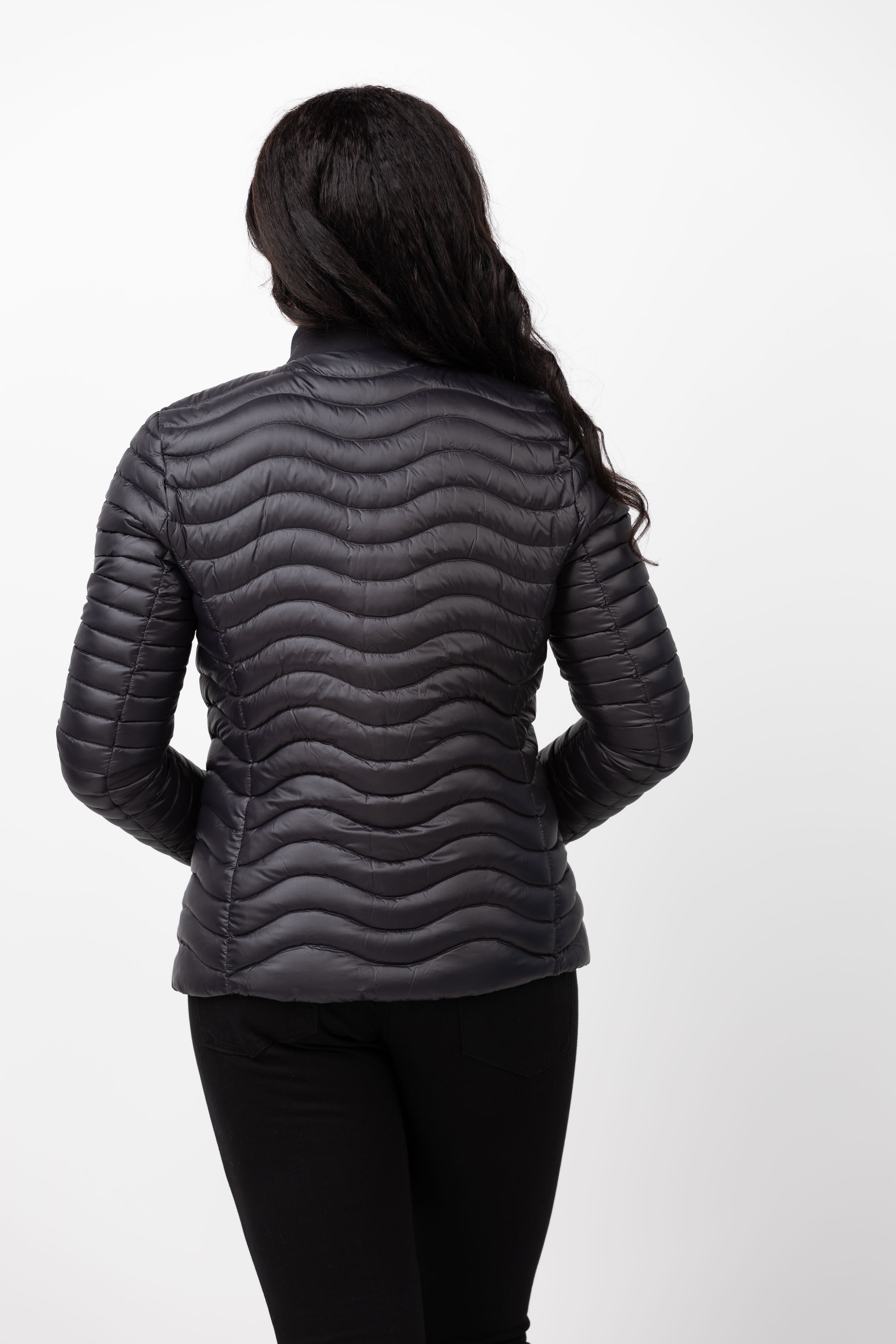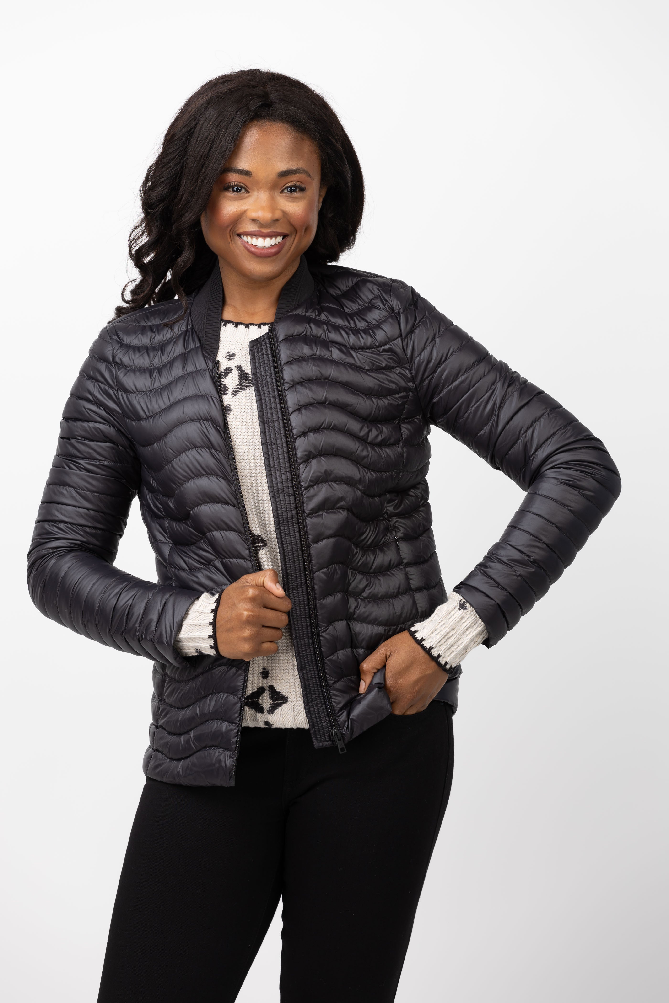 The Robin-V Slim-Fit Jacket by SOIA & KYO is crafted with 100% nylon and responsibly sourced RDS certified down. Its packable design and wavy quilting combine for a stylish and sustainable jacket that keeps the heat in. Make a statement while being kind to the environment.
