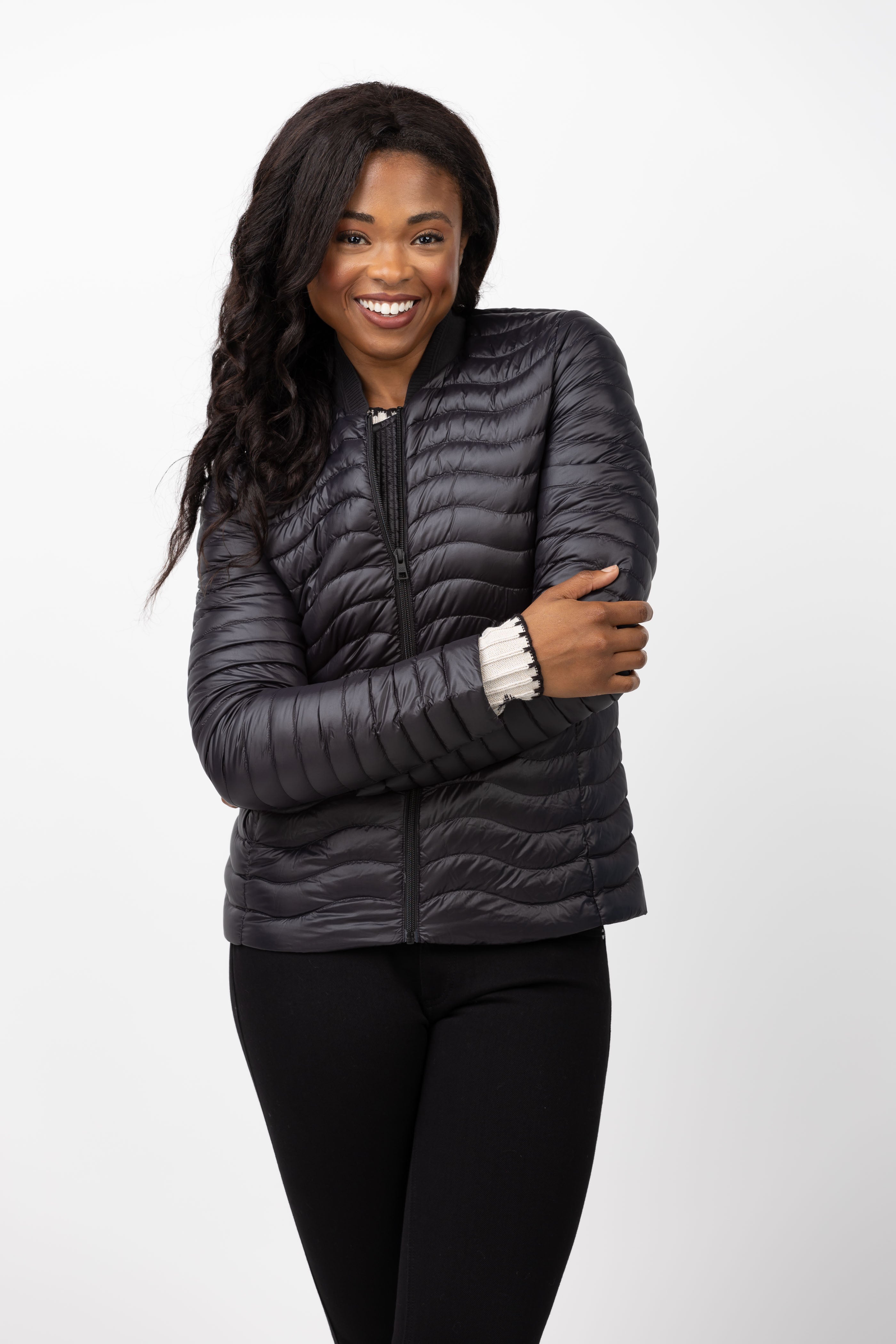 Soia & Kyo Robin-V Sustainable Slim-Fit Ultra-Lightweight Down Jacket in Black