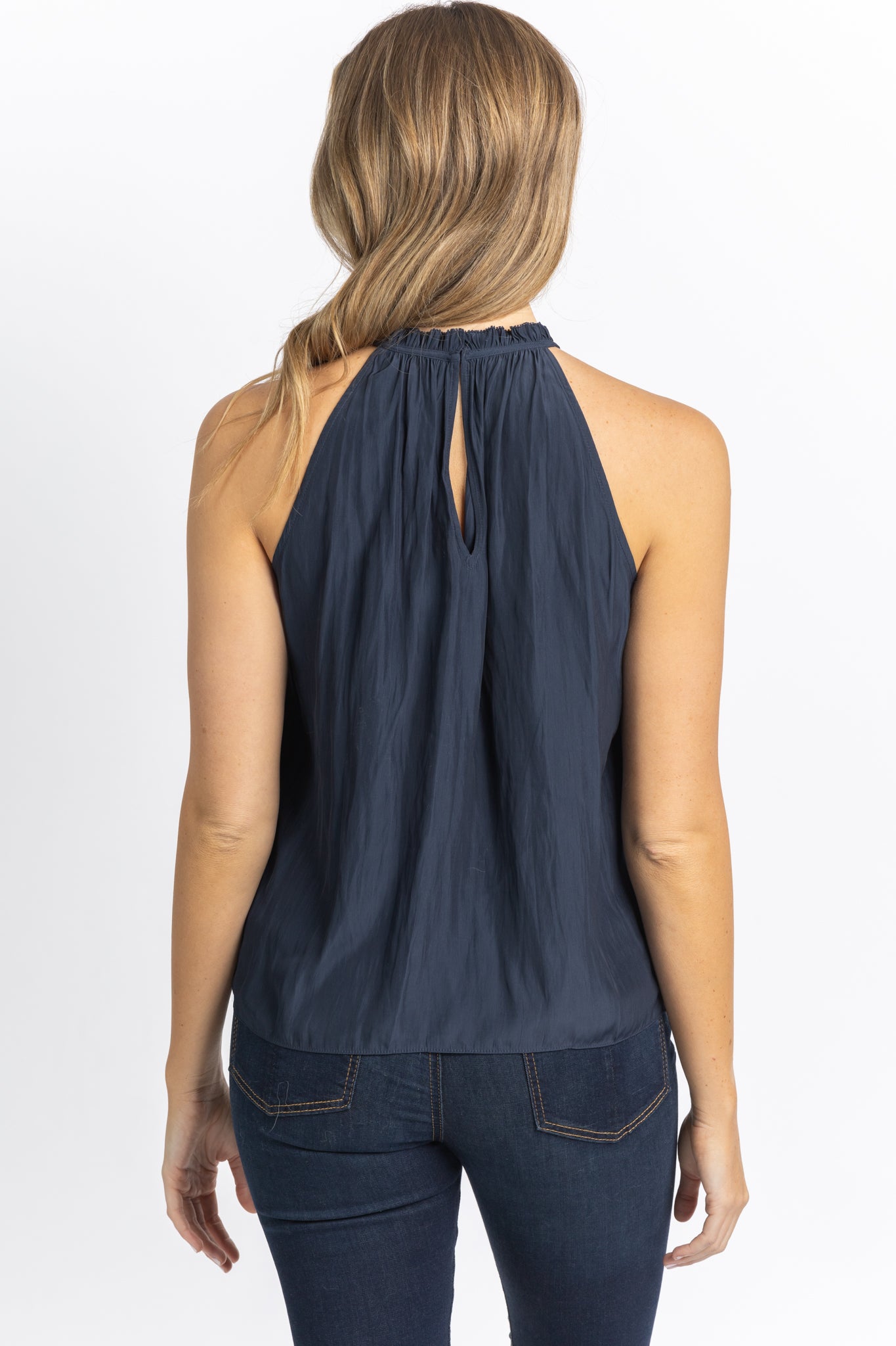 Ramy Brook Caroline High Neck Tank Top in Navy