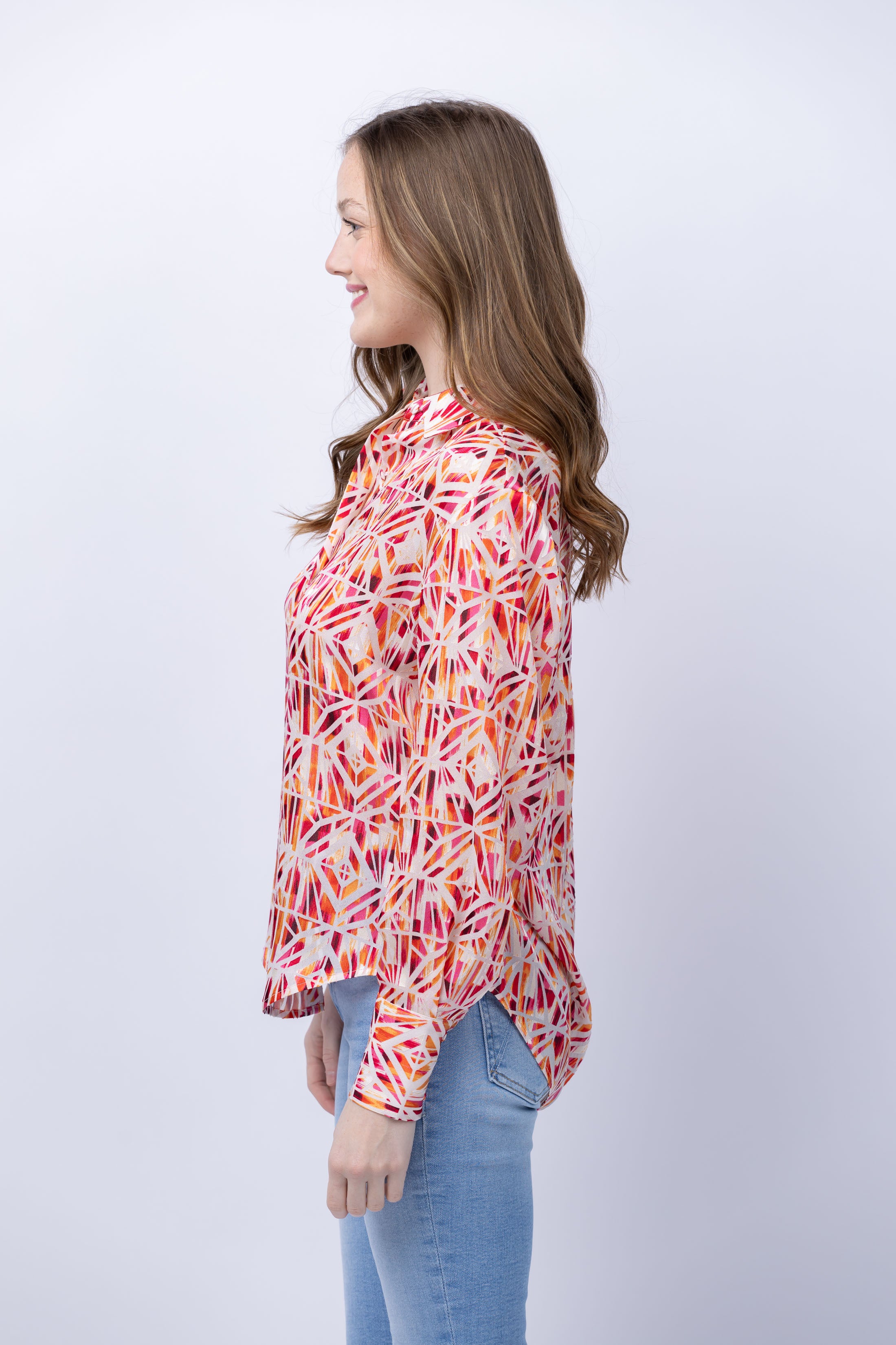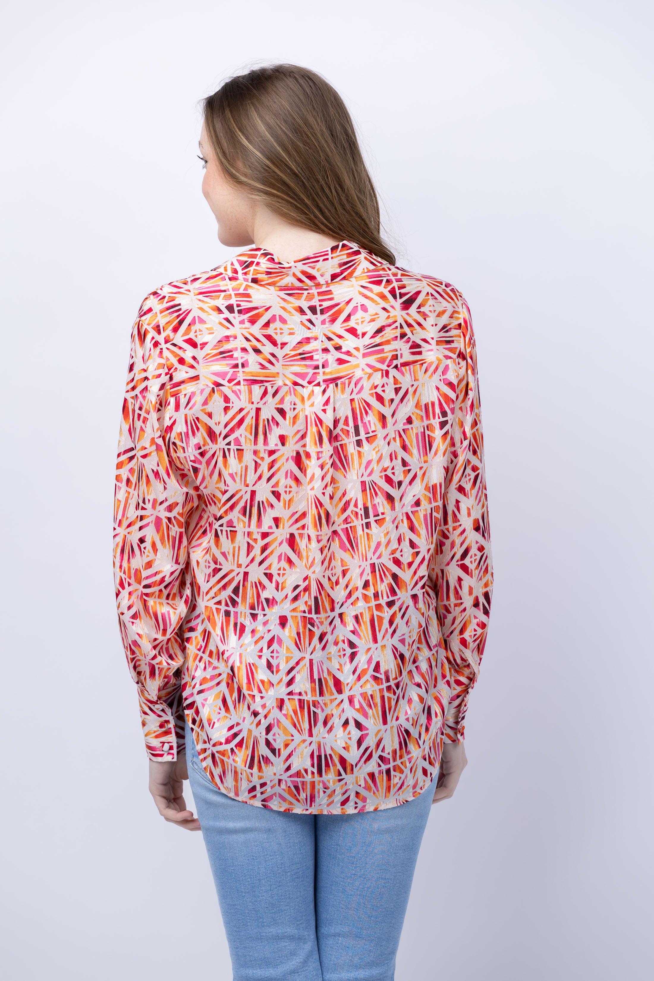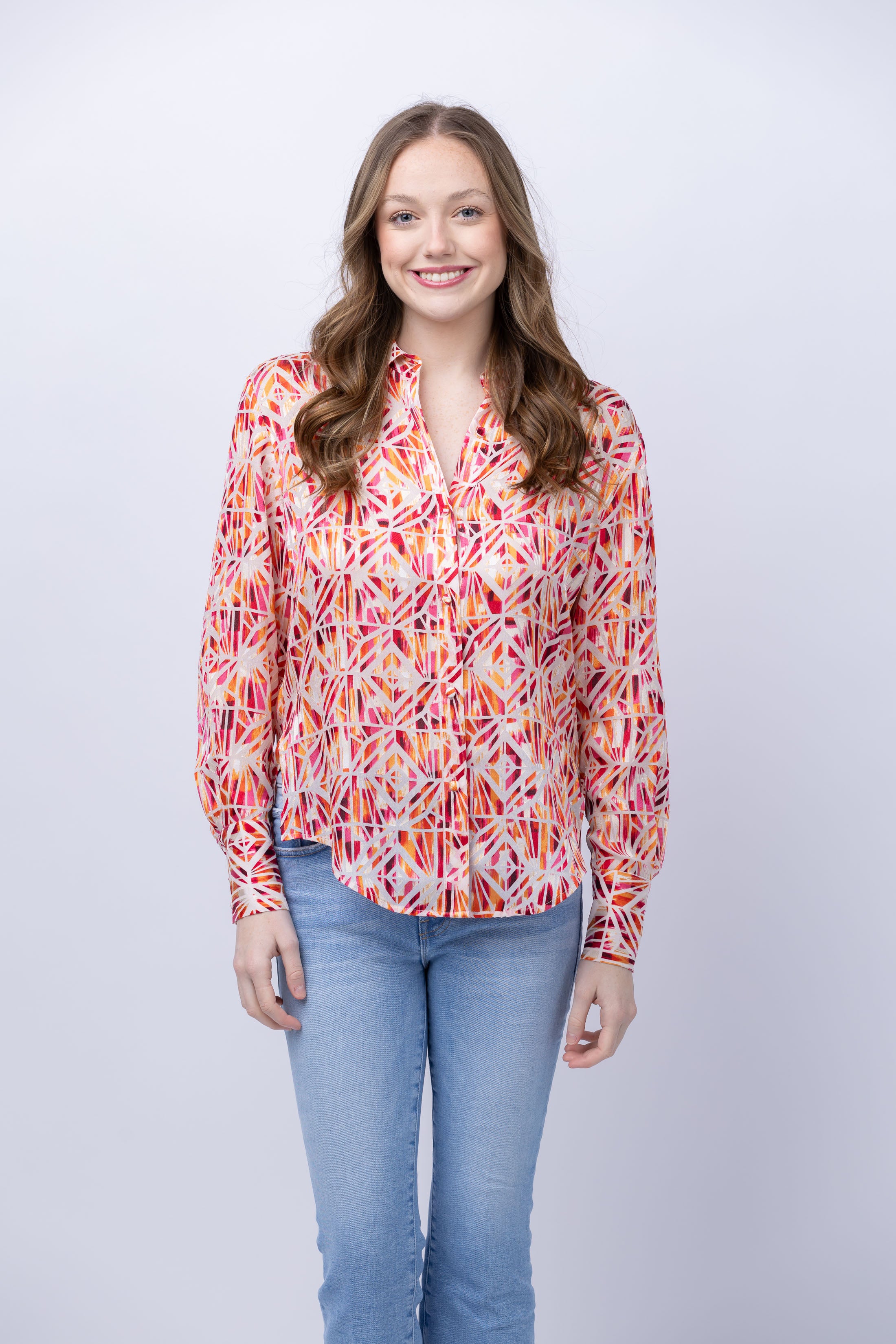 Ramy Brook Melina Dyed Geometric Shirt in Tropic Orange