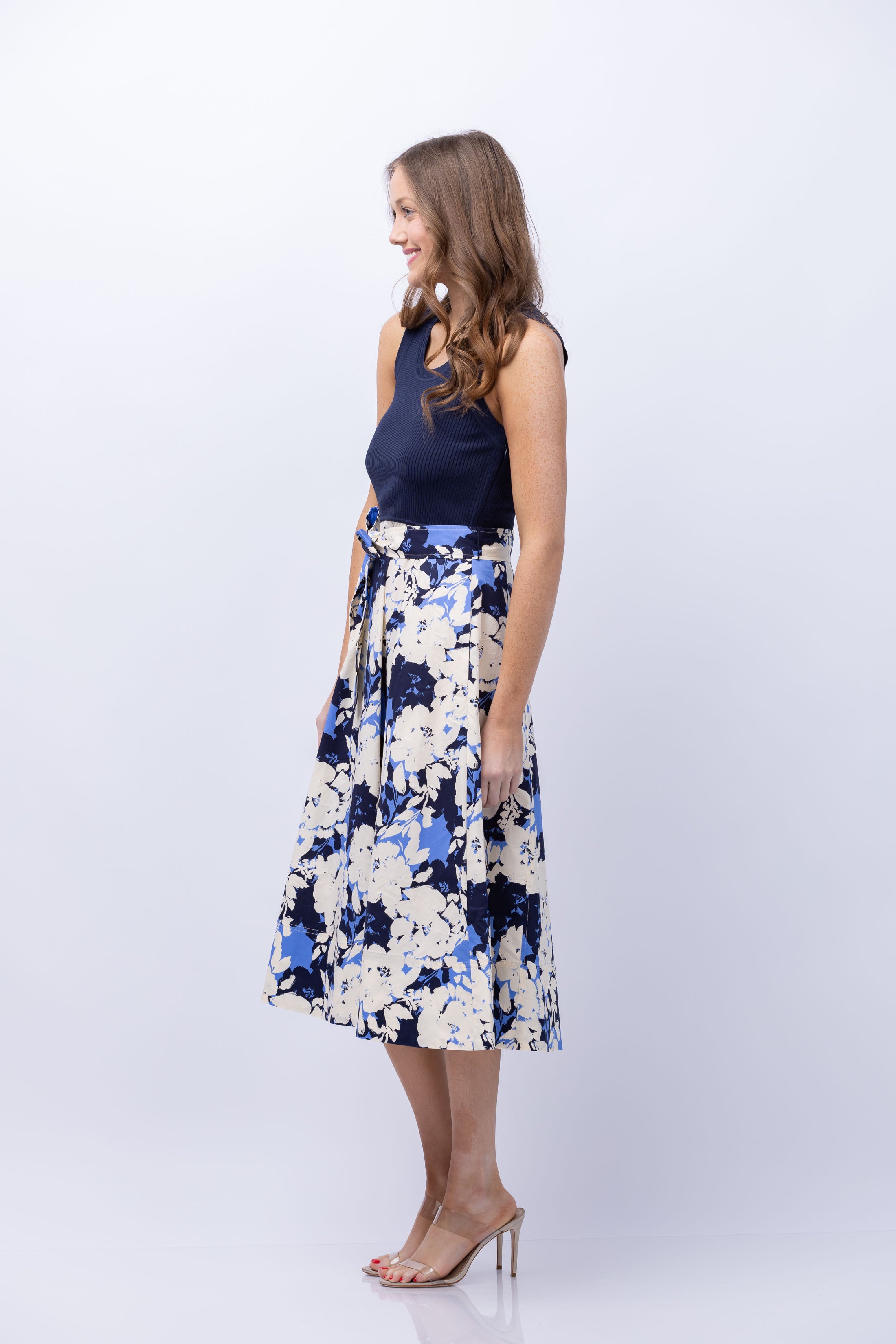 Effortlessly elevate your daytime look with the Tanya Taylor Devon Dress in Maritime Blue/ Azure Multi. With a fitted knit bodice and a lightweight skirt, this dress offers both comfort and style. Complete with a self-tie belt, it's the perfect pop of color to add to your wardrobe. Perfect for any occasion, this dress will be your new go-to!