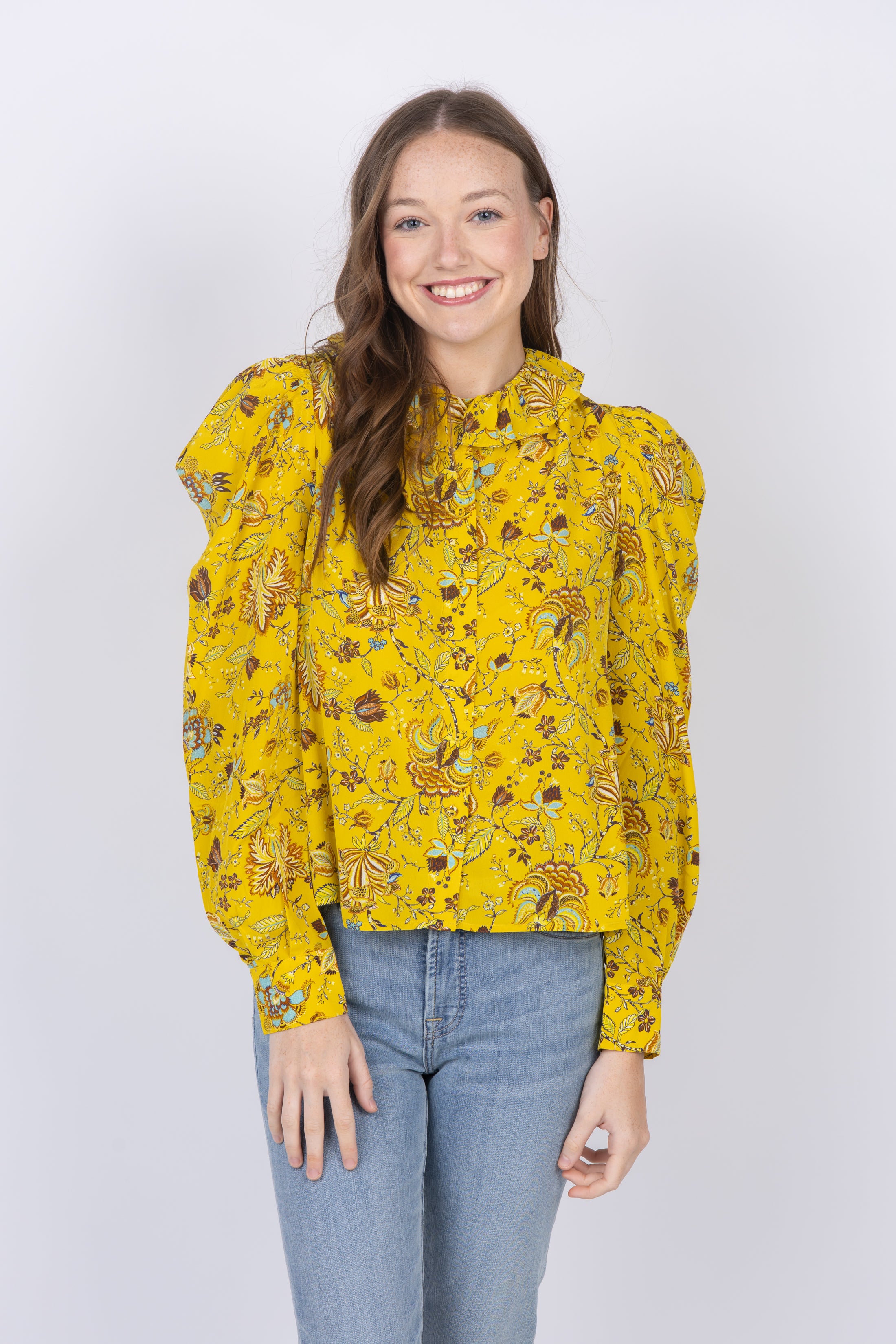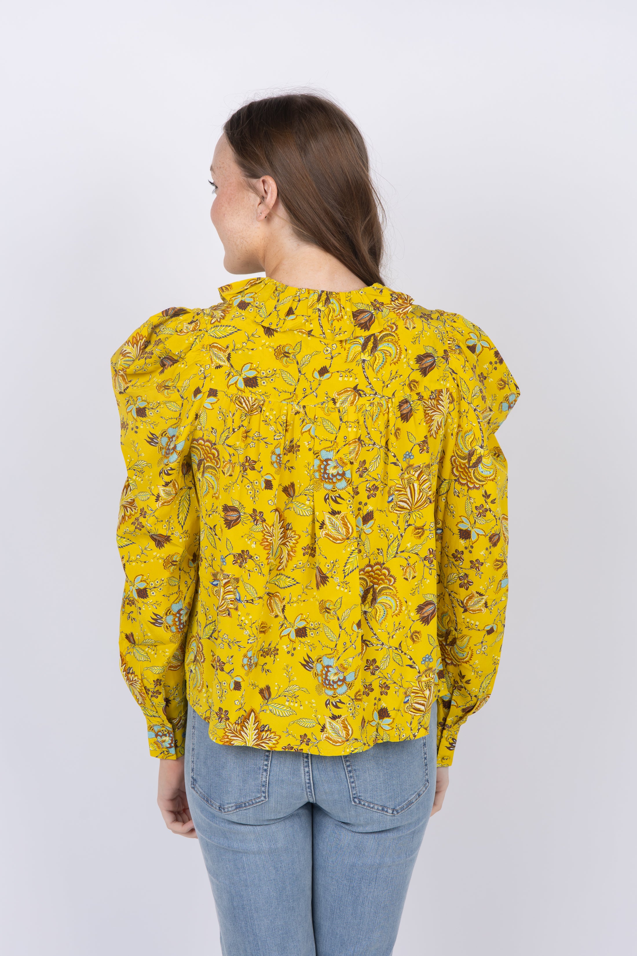 Capture the beauty of a fall day with Ulla Johnson's stunning Dara Blouse. This luxurious silk crepe de chine top features romantic orange blossom motifs, puff sleeves, and ruffles to accentuate the high neck. Plus, its center-front button closure ensures effortless comfort and style. Fall in love with effortless elegance!