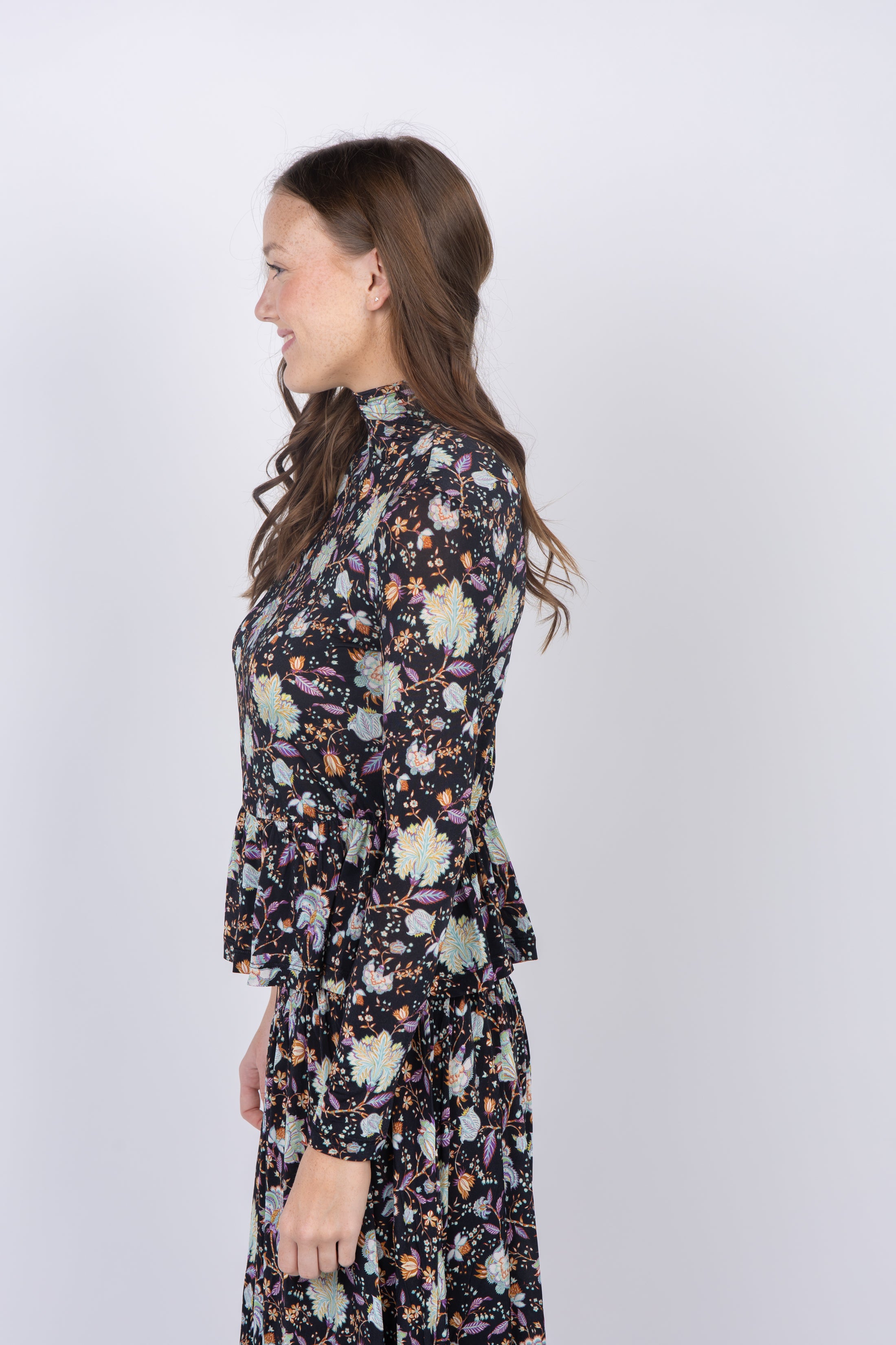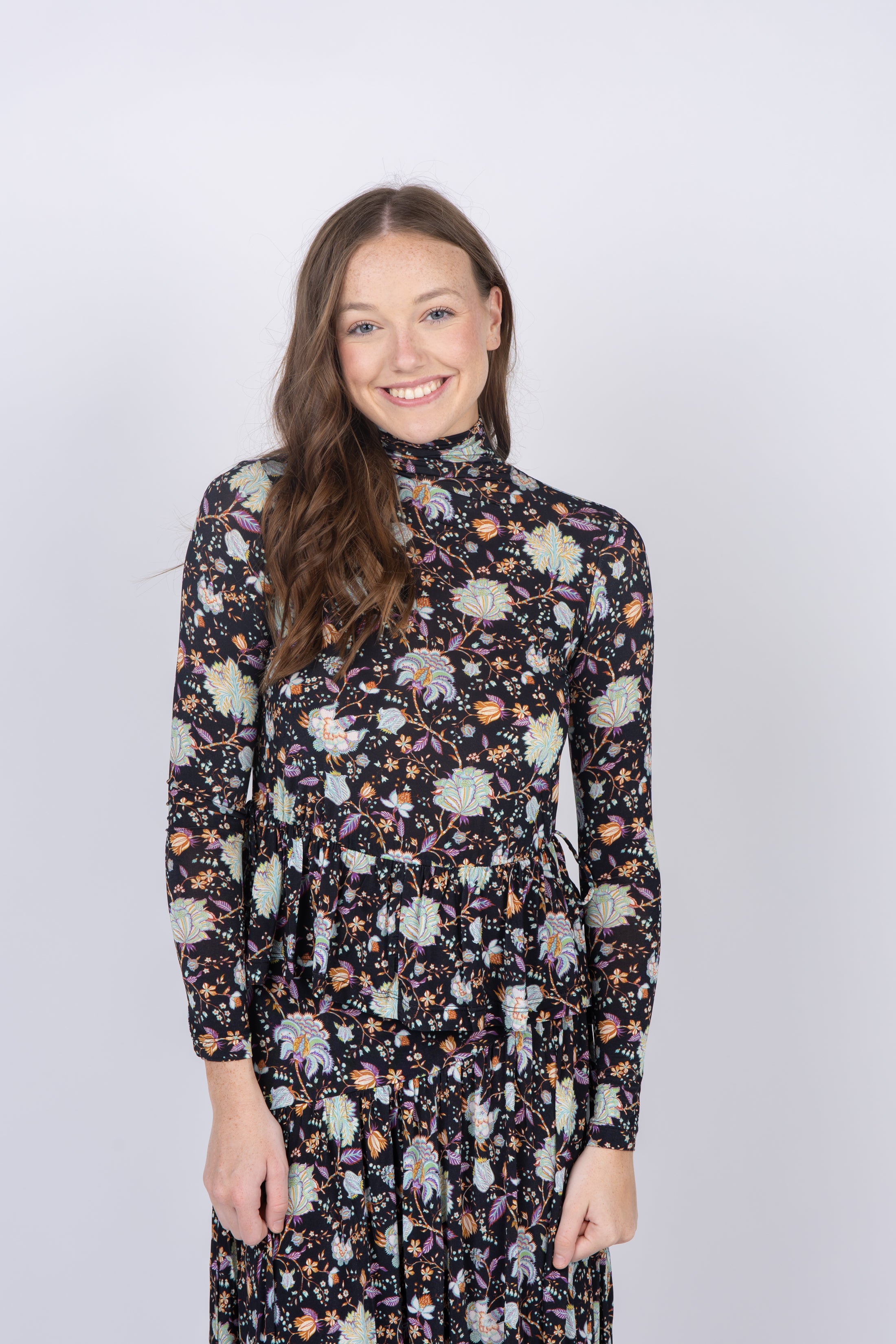 The Ulla Johnson Nina Top is the perfect mix of luxury and comfort, crafted from light and silken draped tricot jersey. Experience a touch of sophistication with the flattering ruched waistband and peplum hem, all tied together with drawstring ties. Enhance your wardrobe with the perfect evening top – the Nina Top in Nuit!